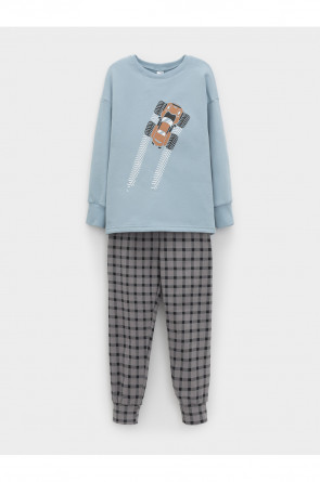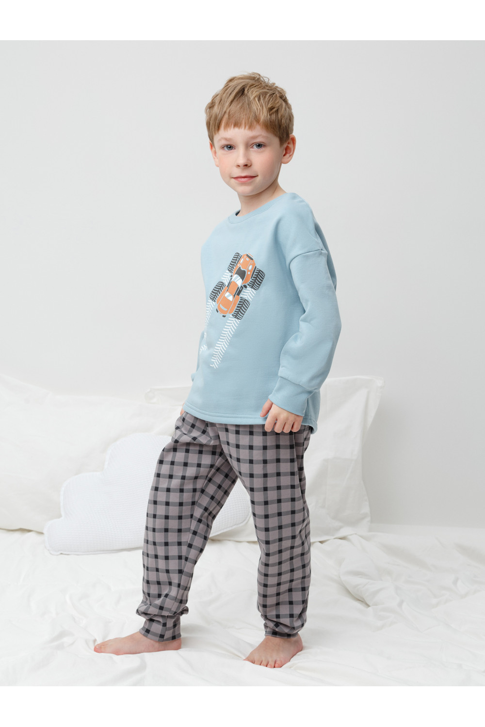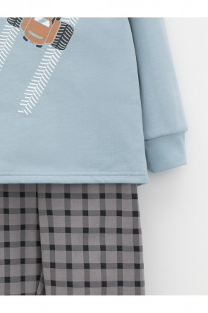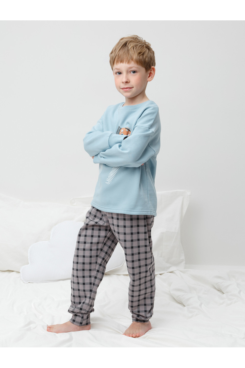 Трикотажная пижама с начёсом из натурального хлопка. Джемпер с длинными спущенными рукавами и брюки с эластичной резинкой в поясе. Мягкие манжеты на рукавах и по низу брюк. Оригинальные набивка и принт выполнены из стойких гипоаллергенных текстильных гипоаллергенных красителей. Изделие сохраняет цвет и форму после многократных стирок. Все трикотажные полотна производятся в соответсвии с нормами швейцарского сертификата ЭкоТекс.