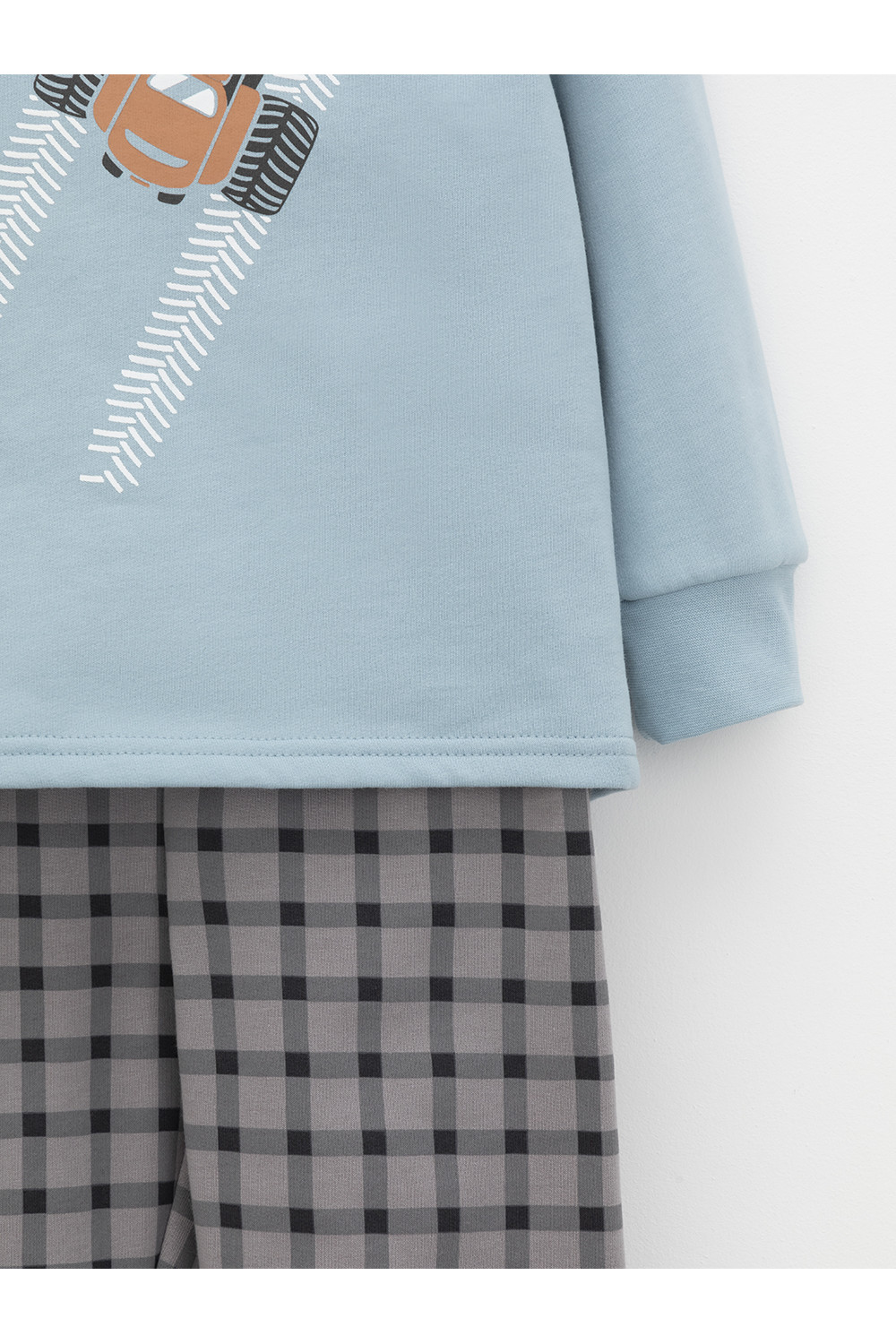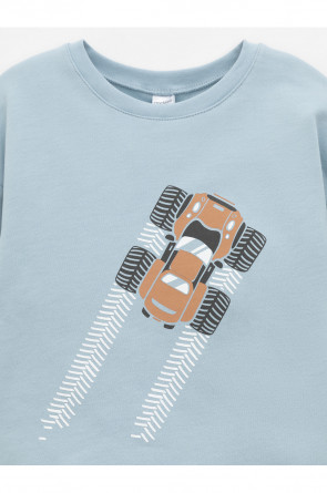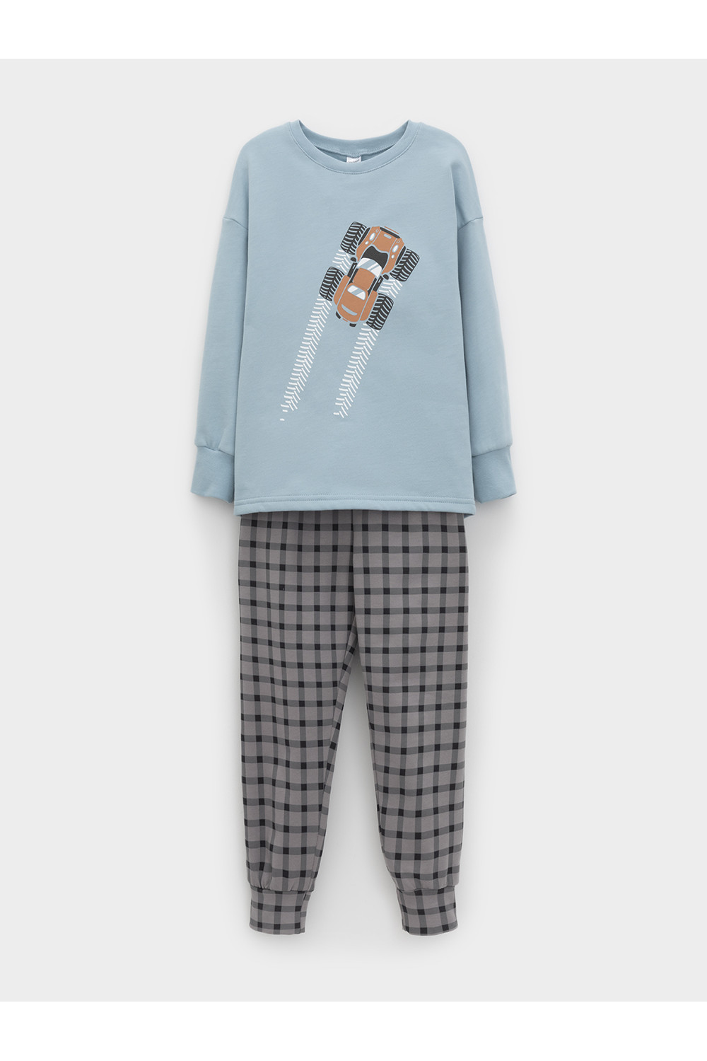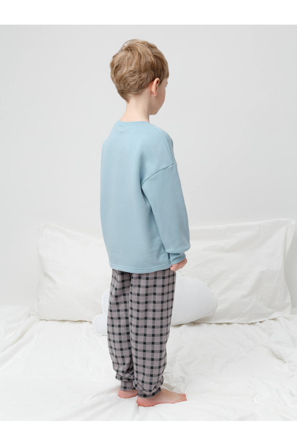 Трикотажная пижама с начёсом из натурального хлопка. Джемпер с длинными спущенными рукавами и брюки с эластичной резинкой в поясе. Мягкие манжеты на рукавах и по низу брюк. Оригинальные набивка и принт выполнены из стойких гипоаллергенных текстильных гипоаллергенных красителей. Изделие сохраняет цвет и форму после многократных стирок. Все трикотажные полотна производятся в соответсвии с нормами швейцарского сертификата ЭкоТекс.