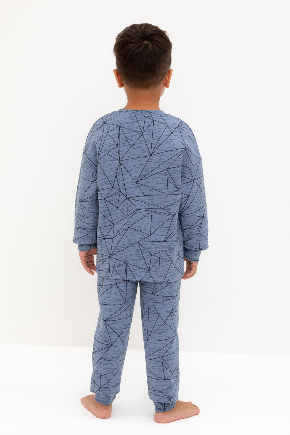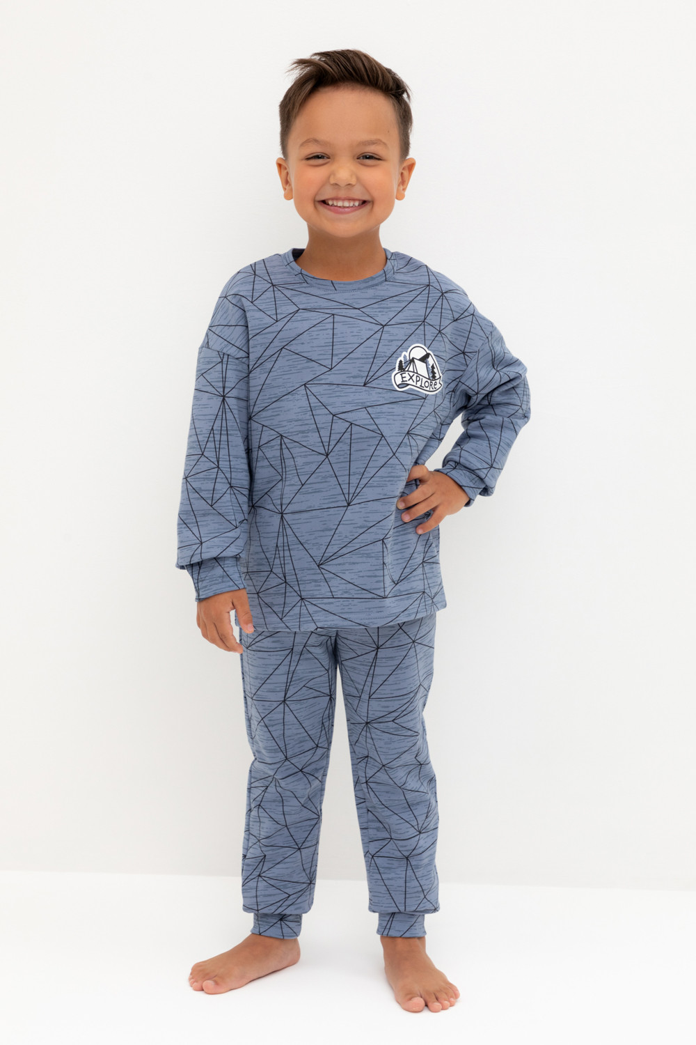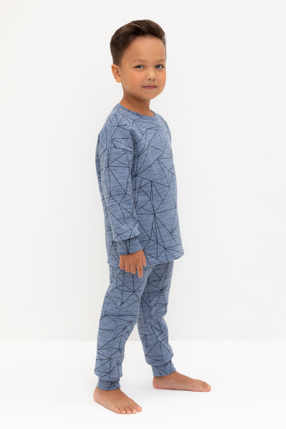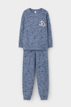 Трикотажная пижама с начёсом из натурального хлопка. Джемпер с длинными спущенными рукавами и брюки с эластичной резинкой в поясе. Мягкие манжеты на рукавах и по низу брюк. Оригинальные набивка и принт выполнены из стойких гипоаллергенных текстильных гипоаллергенных красителей. Изделие сохраняет цвет и форму после многократных стирок. Все трикотажные полотна производятся в соответсвии с нормами швейцарского сертификата ЭкоТекс.