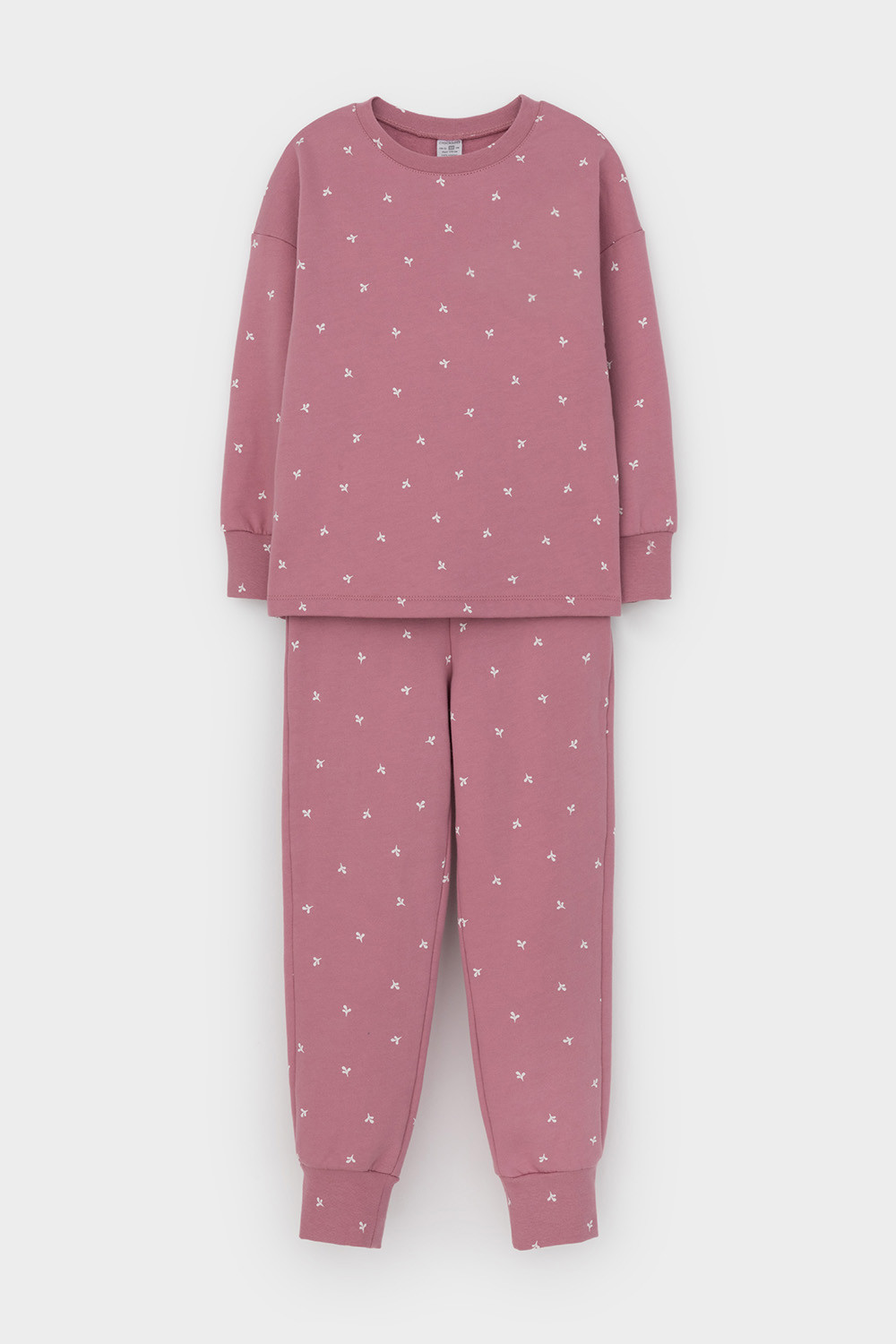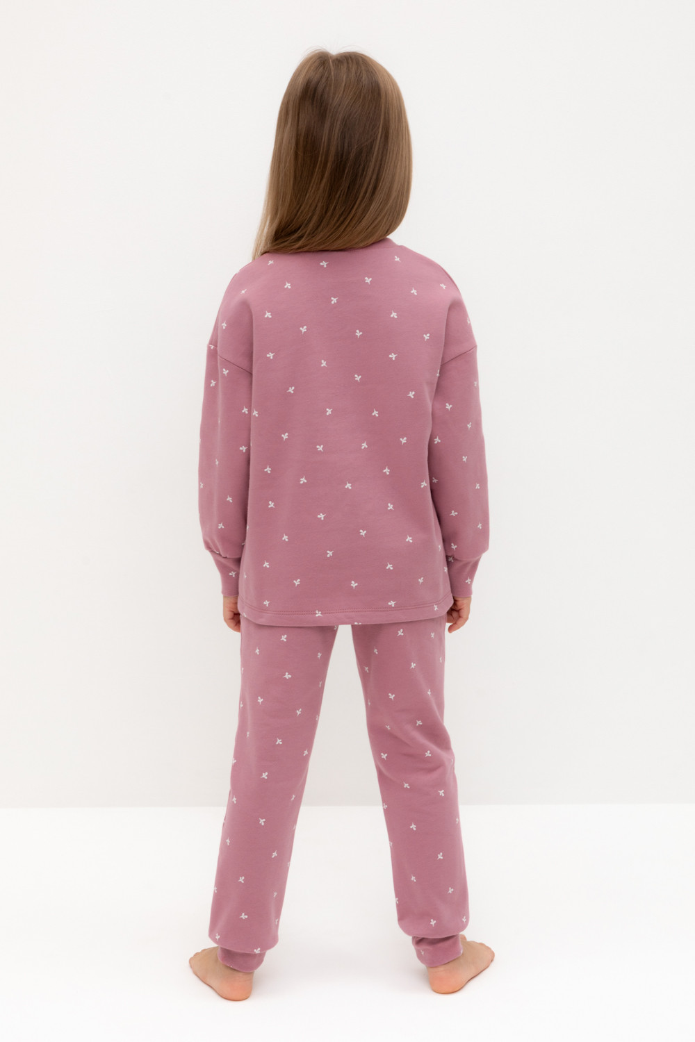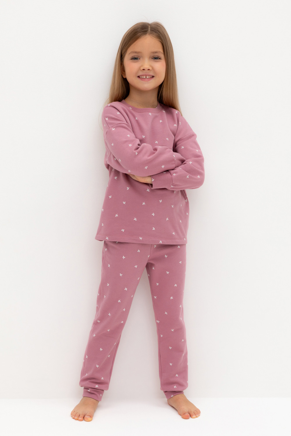 Трикотажная пижама с начёсом из натурального хлопка. Джемпер с длинными спущенными рукавами и брюки с эластичной резинкой в поясе. Мягкие манжеты на рукавах и по низу брюк. Оригинальная набивка выполнена из стойких гипоаллергенных текстильных гипоаллергенных красителей. Изделие сохраняет цвет и форму после многократных стирок. Все трикотажные полотна производятся в соответсвии с нормами швейцарского сертификата ЭкоТекс.