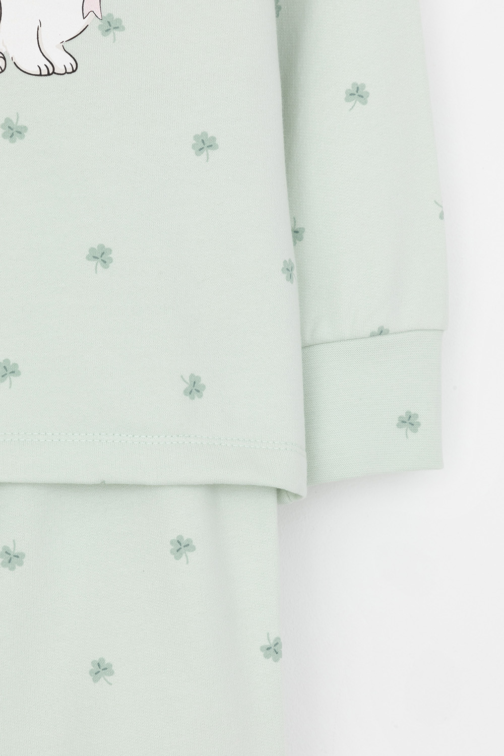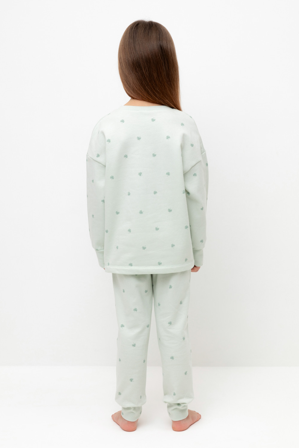 Тёплая пижама с начёсом из натурального хлопка. Джемпер с длинными спущенными рукавами и брюки с эластичной резинкой в поясе. Мягкие манжеты на рукавах и по низу брюк. Оригинальные набивка и принт выполнены из стойких гипоаллергенных текстильных красителей. Изделие сохраняет цвет и форму после многократных стирок. Все трикотажные полотна производятся в соответствии с нормами швейцарского сертификата ЭкоТекс.