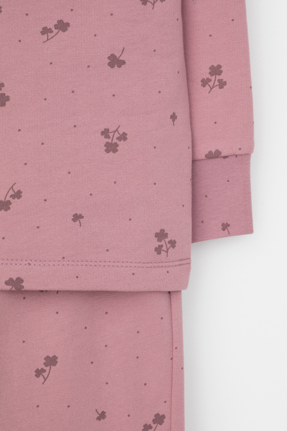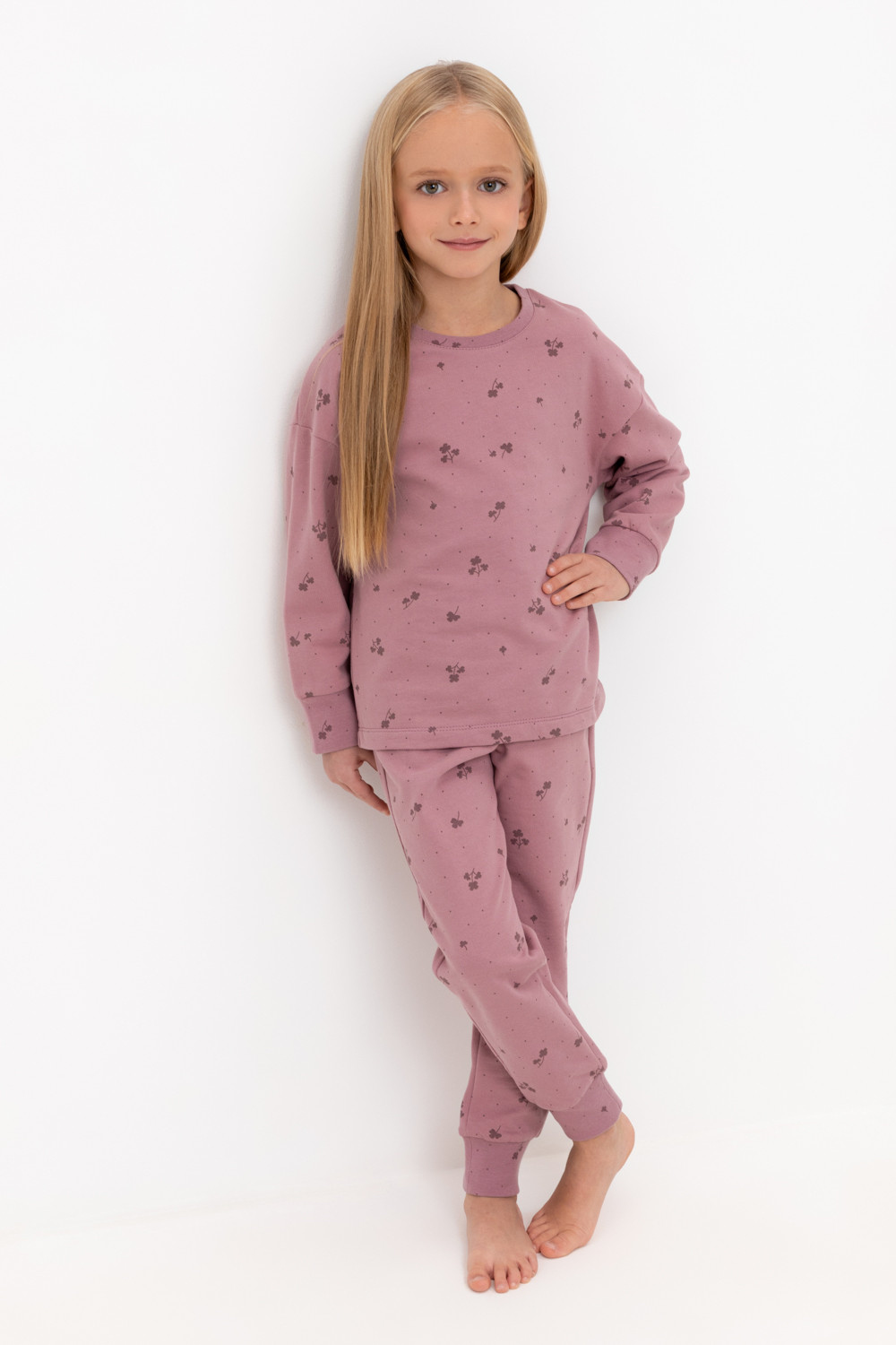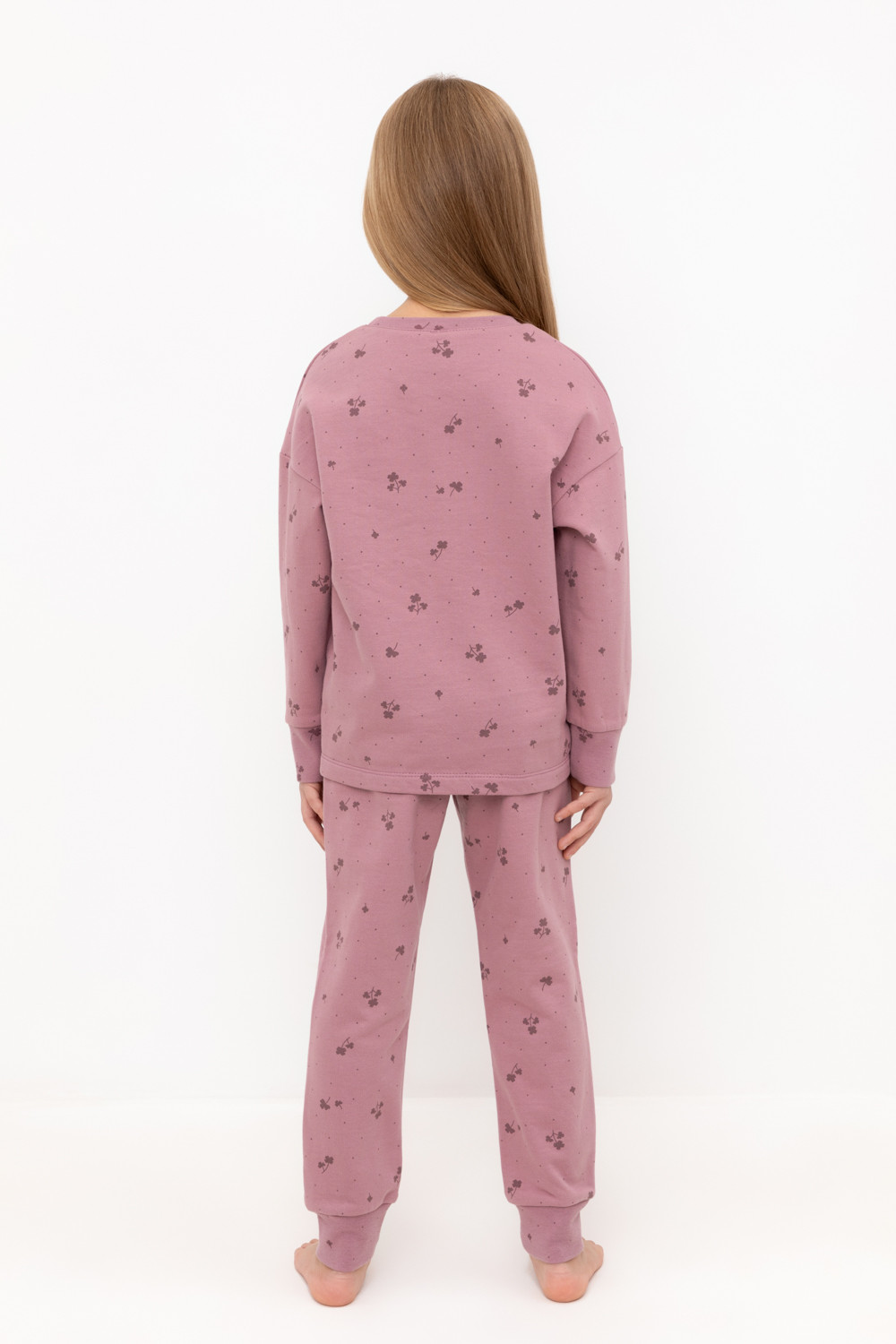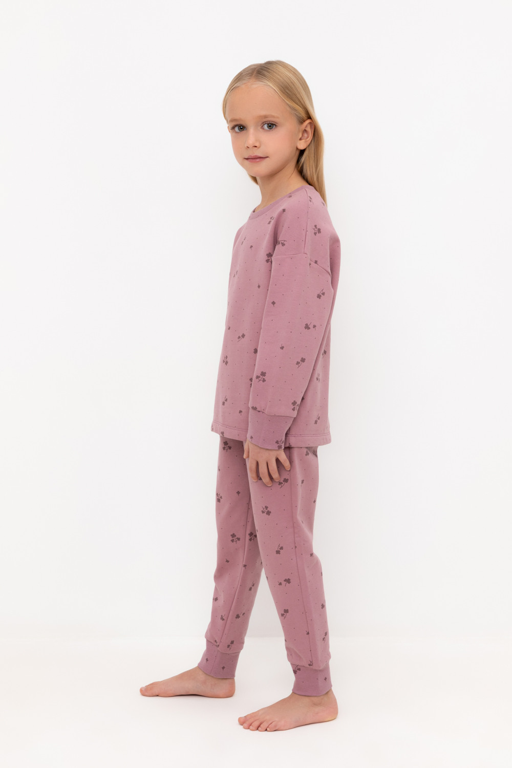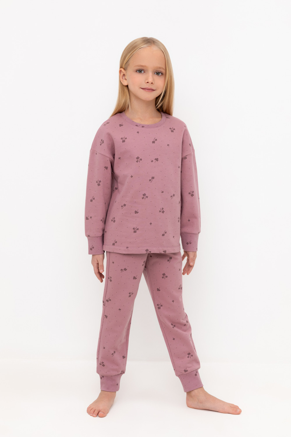 Трикотажный пижамный комплект из футера с начёсом, произведённого из натурального хлопка. У джемпера длинные рукава со спущенными плечами и эластичная мягкая горловина и манжеты. Брюки с удобным поясом на резинке, внизу манжеты. Оригинальная набивка выполнена из стойких, гипоаллергенных текстильных красителей. Все трикотажные полотна производятся в соответствии с нормами Швейцарского сертификата ЭкоТекс.