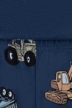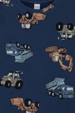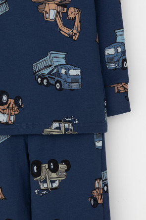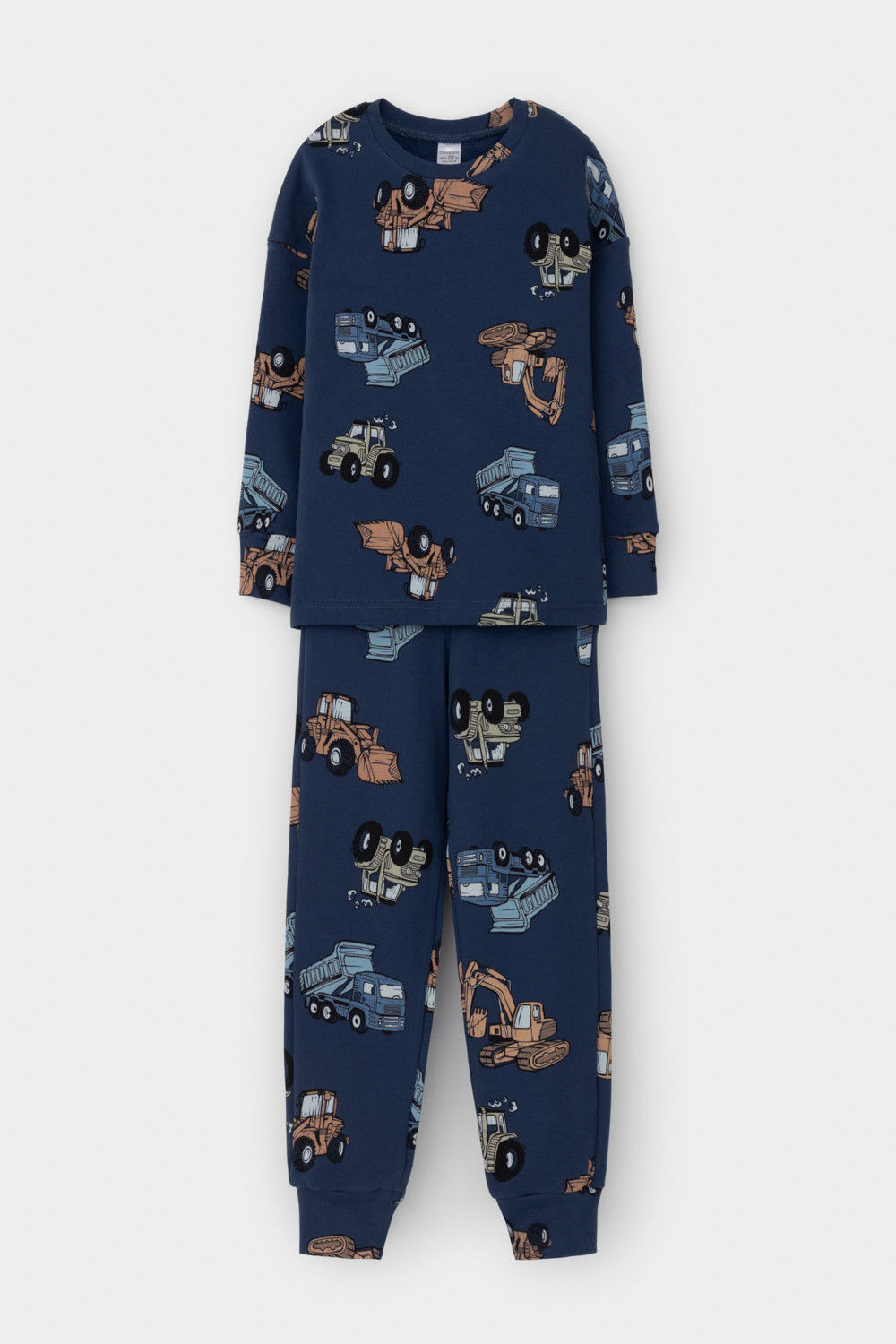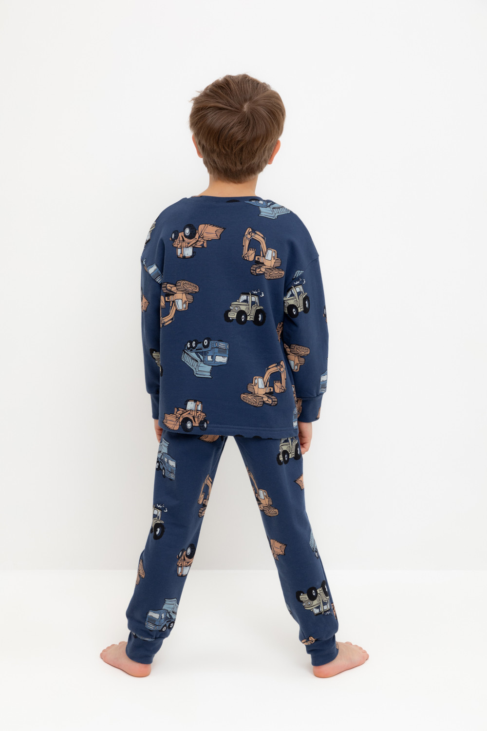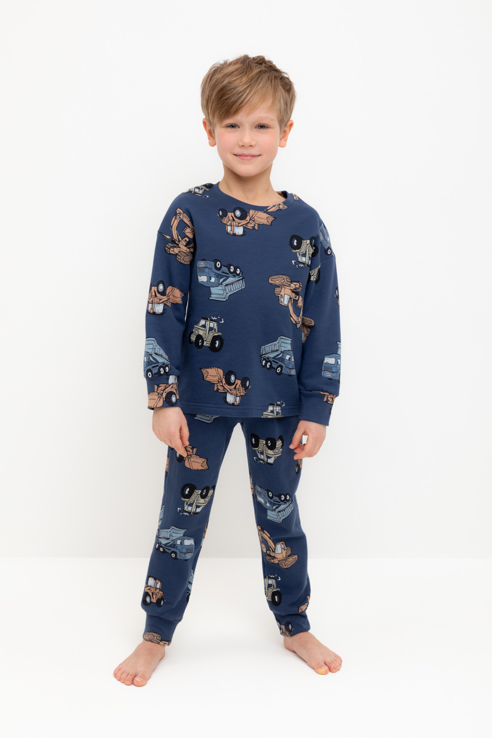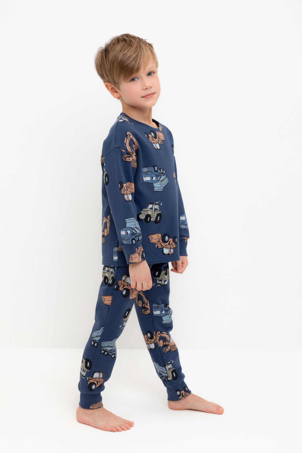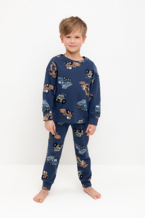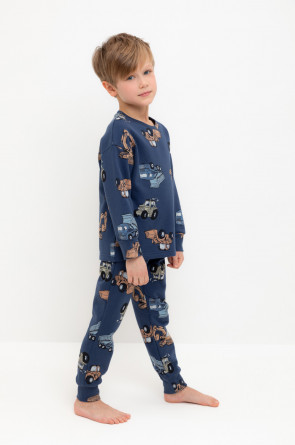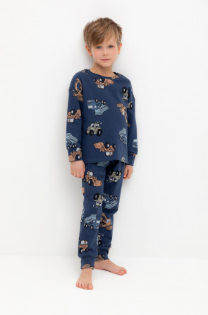 Трикотажная пижама с начёсом из натурального хлопка. Джемпер с длинными спущенными рукавами и брюки с эластичной резинкой в поясе. Мягкие манжеты на рукавах и по низу брюк. Оригинальная набивка выполнена из стойких гипоаллергенных текстильных гипоаллергенных красителей. Изделие сохраняет цвет и форму после многократных стирок. Все трикотажные полотна производятся в соответсвии с нормами швейцарского сертификата ЭкоТекс.