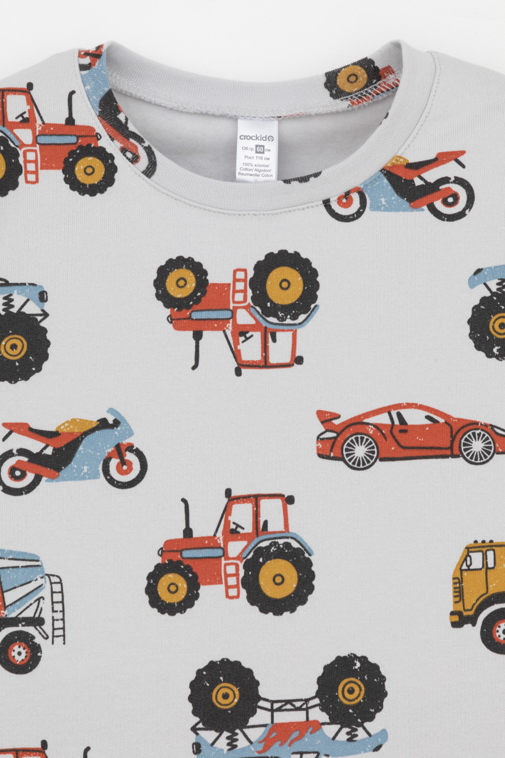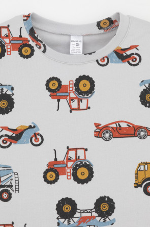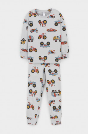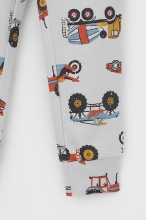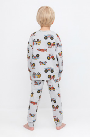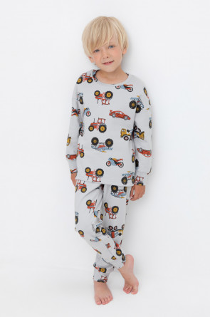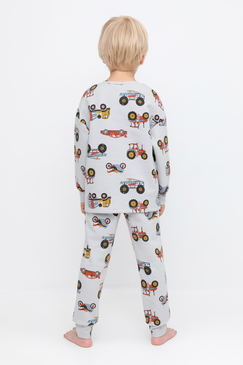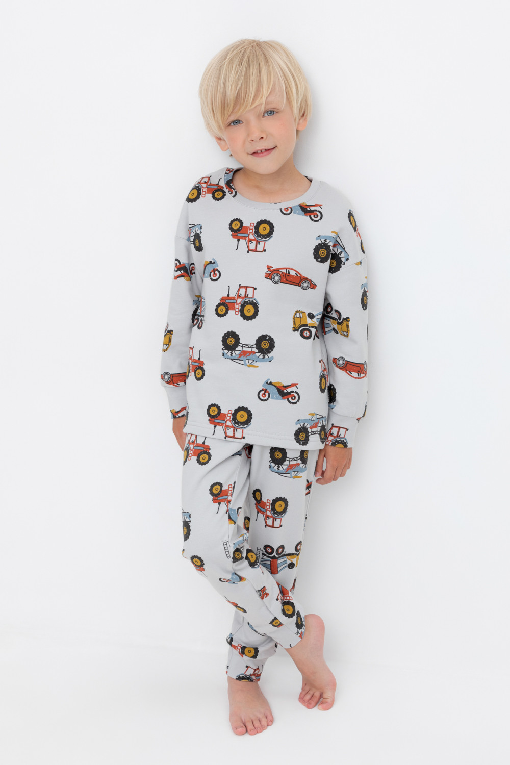 Трикотажный пижамный комплект из футера с начёсом, произведённого из натурального хлопка. У джемпера длинные рукава со спущенными плечами и эластичная мягкая горловина и манжеты. Брюки с удобным поясом на резинке, внизу манжеты. Оригинальная набивка выполнена из стойких, гипоаллергенных текстильных красителей. Все трикотажные полотна производятся в соответствии с нормами Швейцарского сертификата ЭкоТекс.