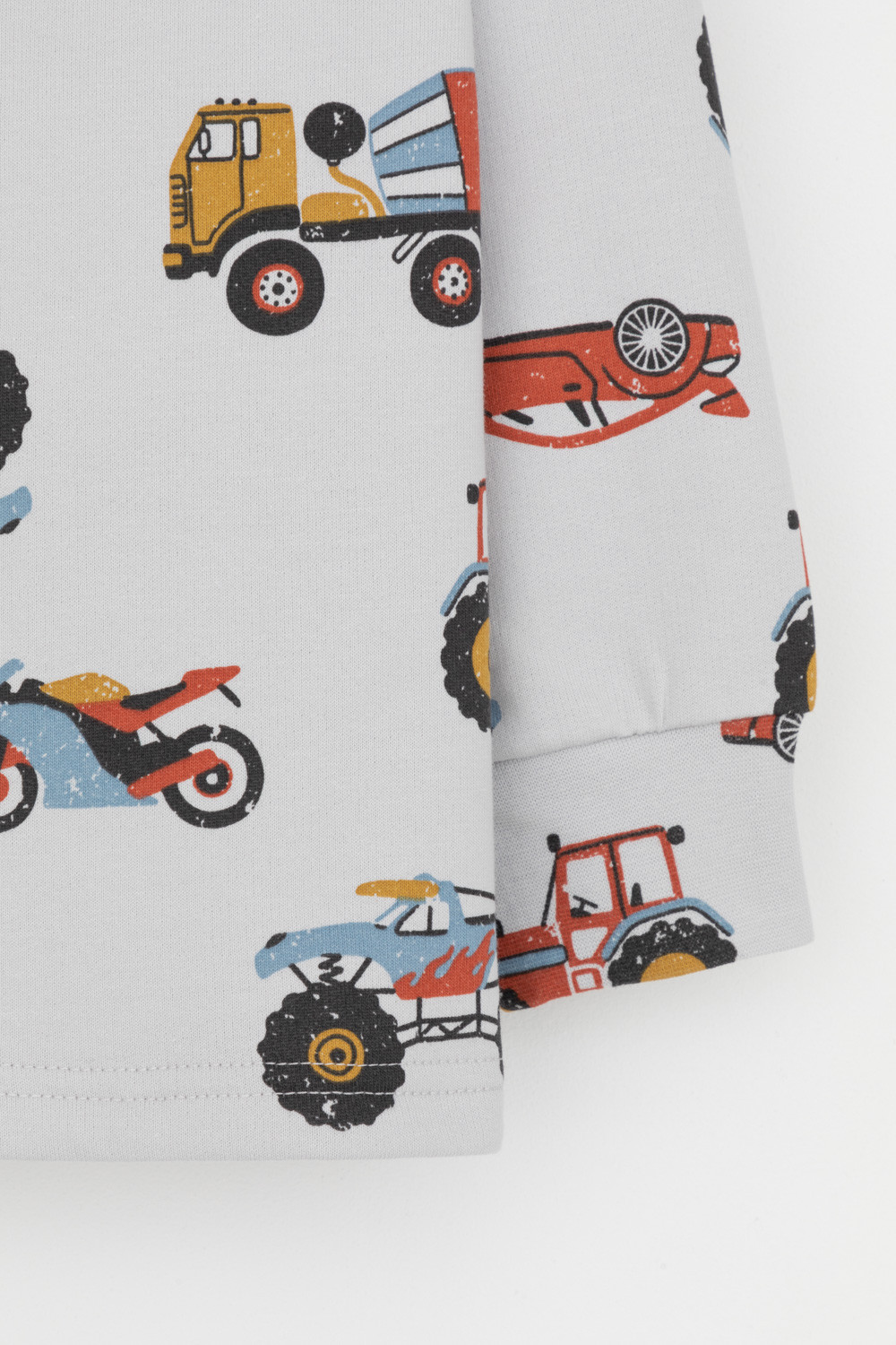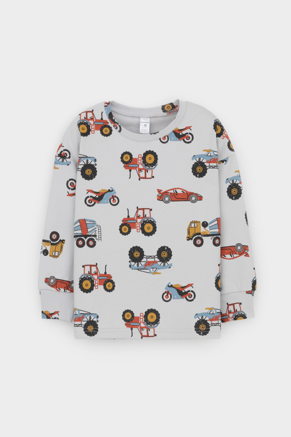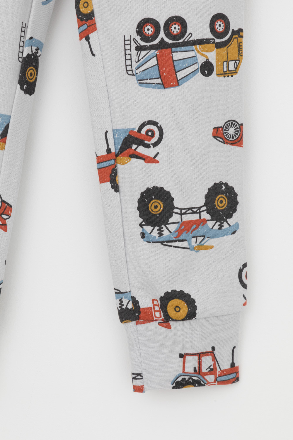 Трикотажный пижамный комплект из футера с начёсом, произведённого из натурального хлопка. У джемпера длинные рукава со спущенными плечами и эластичная мягкая горловина и манжеты. Брюки с удобным поясом на резинке, внизу манжеты. Оригинальная набивка выполнена из стойких, гипоаллергенных текстильных красителей. Все трикотажные полотна производятся в соответствии с нормами Швейцарского сертификата ЭкоТекс.