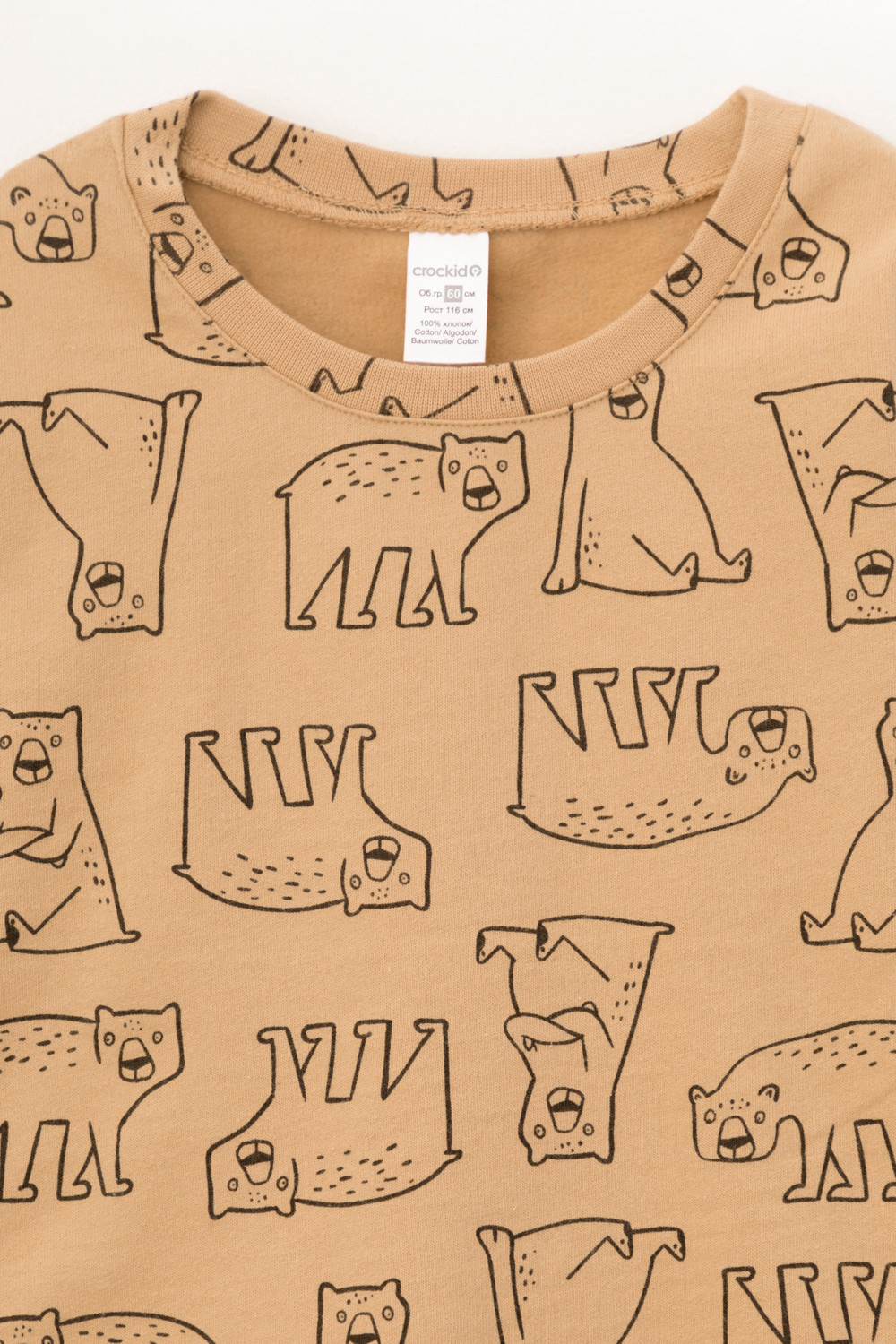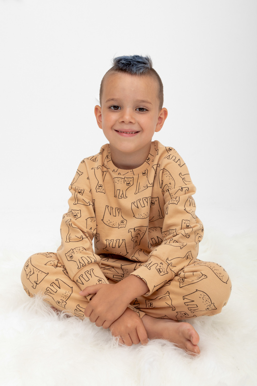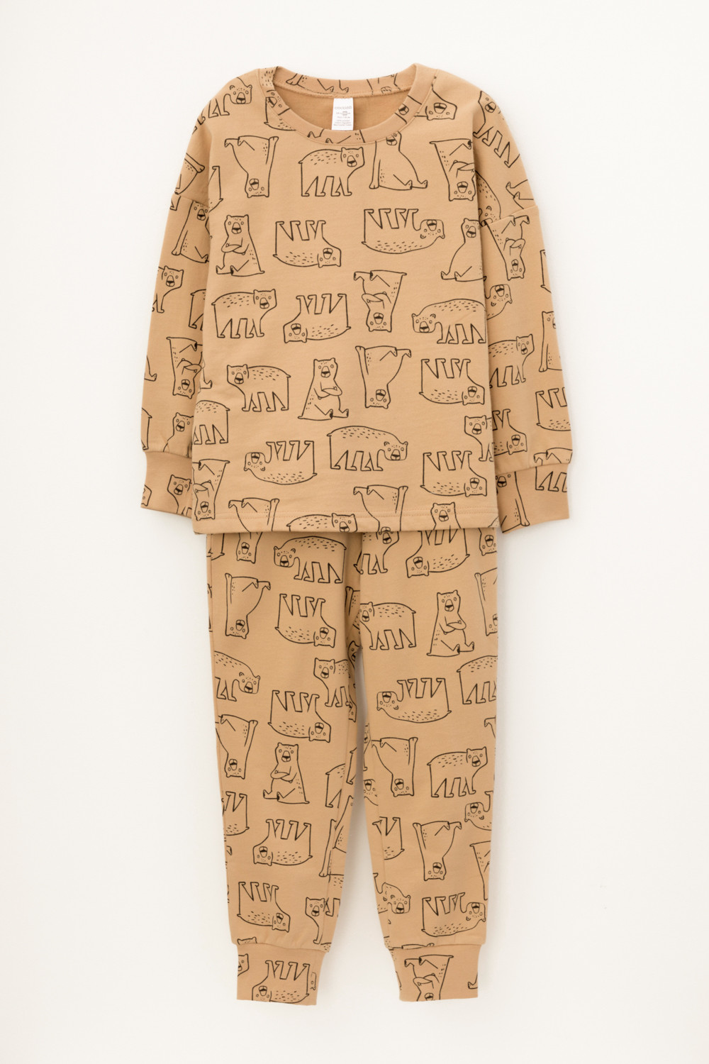 Трикотажный пижамный комплект из футера с начёсом, произведённого из натурального хлопка. У джемпера длинные рукава со спущенными плечами и эластичная мягкая горловина и манжеты. Брюки с удобным поясом на резинке, внизу манжеты. Оригинальная набивка выполнена из стойких, гипоаллергенных текстильных красителей. Все трикотажные полотна производятся в соответствии с нормами Швейцарского сертификата ЭкоТекс.