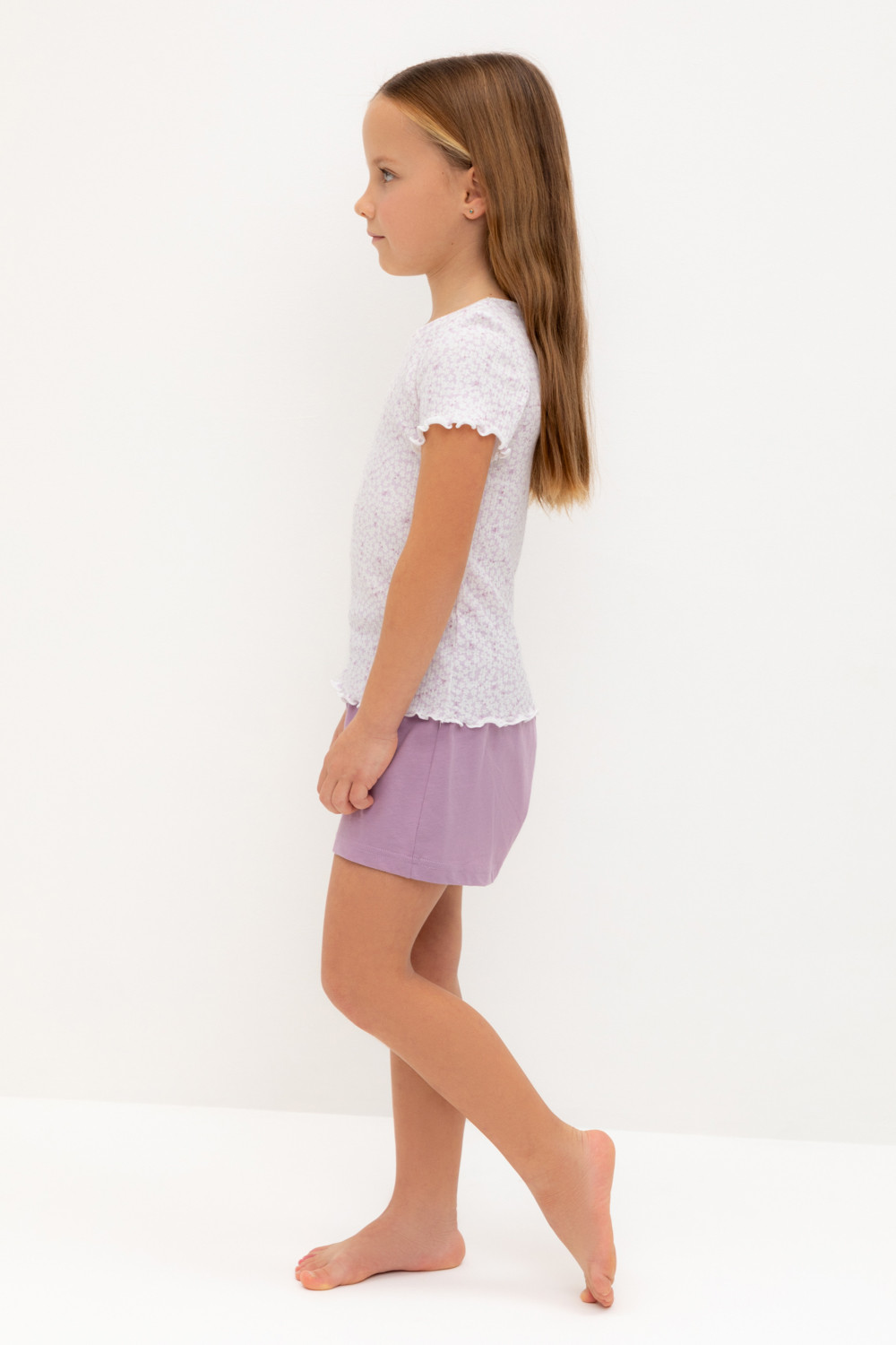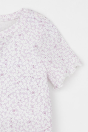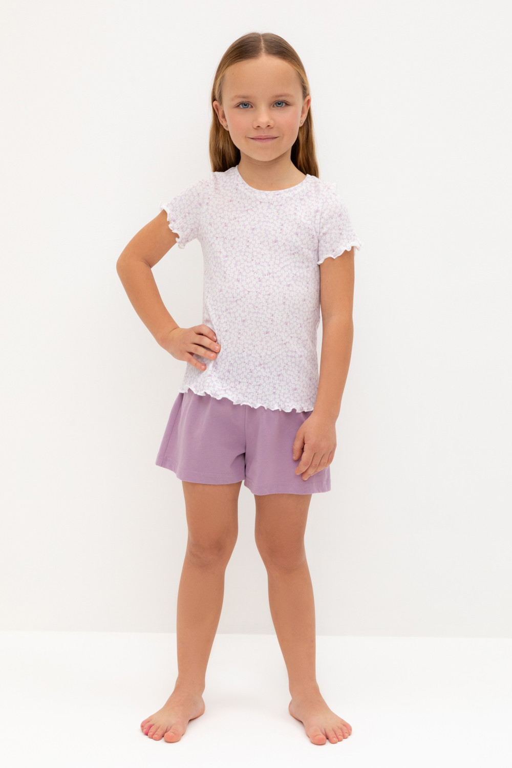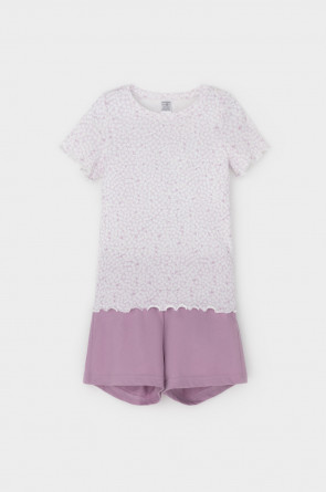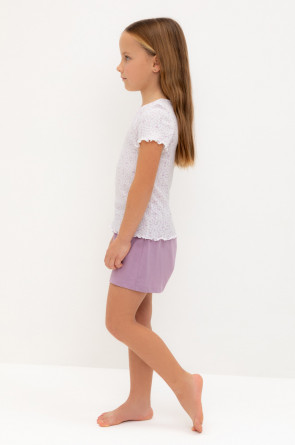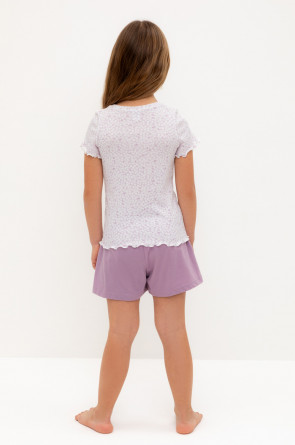 Трикотажная пижама из натурального хлопка. Футболка с короткими втачными рукавами изготовлена из эластичного трикотажа в рубчик. Шорты с эластичной резинкой в поясе выполнены из гладкого трикотажа супрем. Оригинальная набивка выполнена из стойких текстильных гипоаллергенных красителей. Изделие сохраняет цвет и форму после многократных стирок. Все трикотажные полотна производятся в соответсвии с нормами швейцарского сертификата ЭкоТекс.