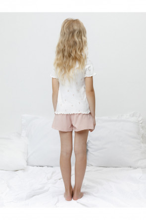 Трикотажная пижама из натурального хлопка. Футболка с короткими втачными рукавами изготовлена из эластичного трикотажа в рубчик. Шорты с эластичной резинкой в поясе выполнены из гладкого трикотажа супрем. Оригинальная набивка выполнена из стойких текстильных гипоаллергенных красителей. Изделие сохраняет цвет и форму после многократных стирок. Все трикотажные полотна производятся в соответсвии с нормами швейцарского сертификата ЭкоТекс.