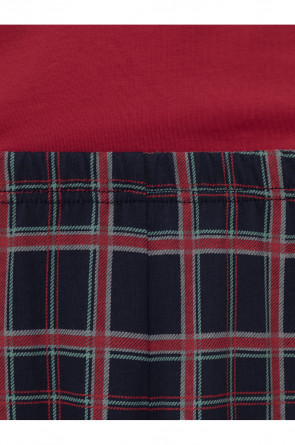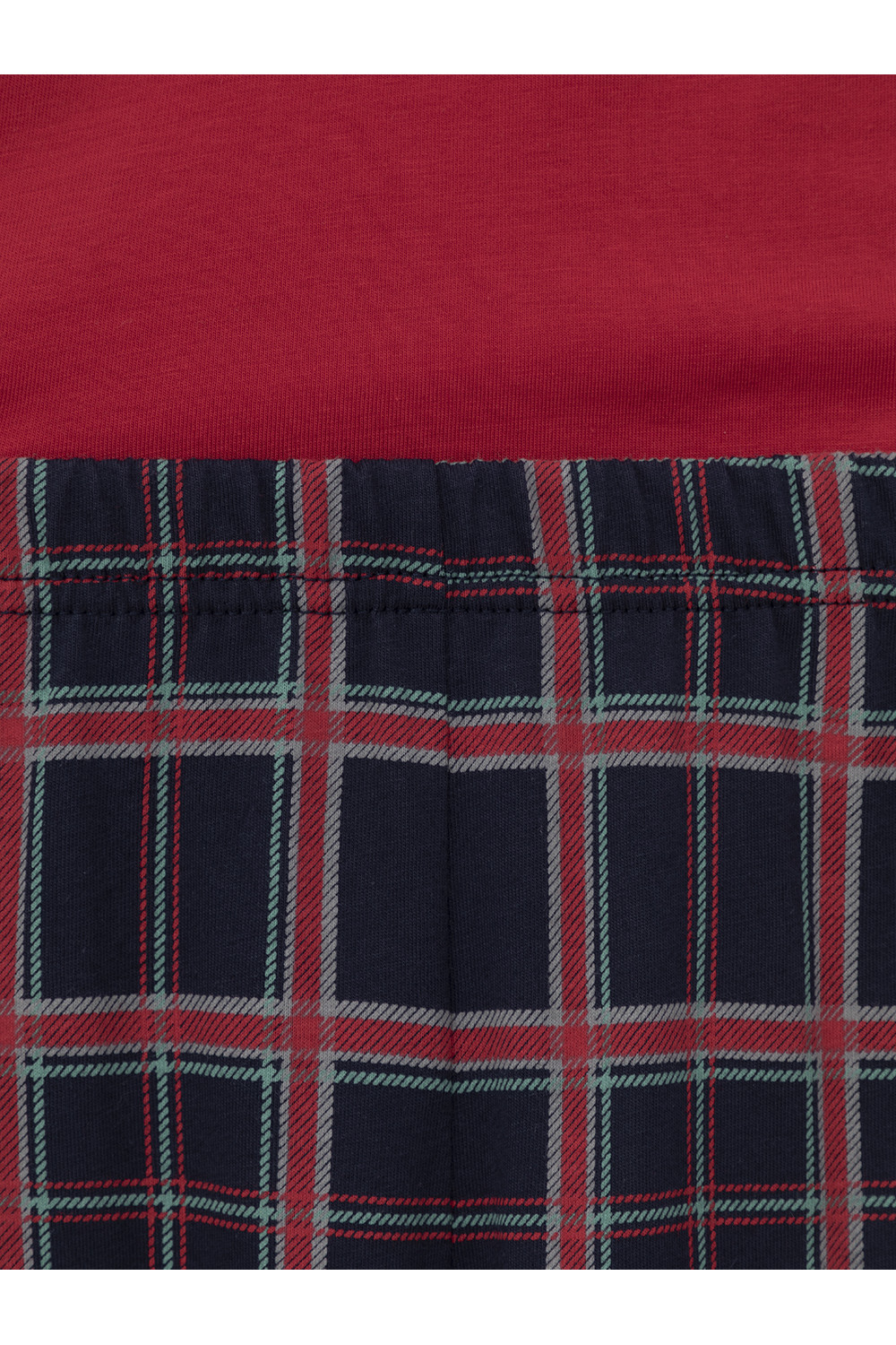 Новогодняя пижама из натурального хлопка для мальчика. Футболка с короткими втачными рукавами и прямые брюки с эластичной резинкой в поясе. Пижама отлично подойдёт для создания уютных домашних образов или в качестве подарка на Новый год и Рождество. Оригинальная набивка и принт выполнены из стойких текстильных гипоаллергенных красителей. Изделие сохраняет цвет и форму после многократных стирок. Все трикотажные полотна производятся в соответствии с нормами швейцарского сертификата ЭкоТекс.