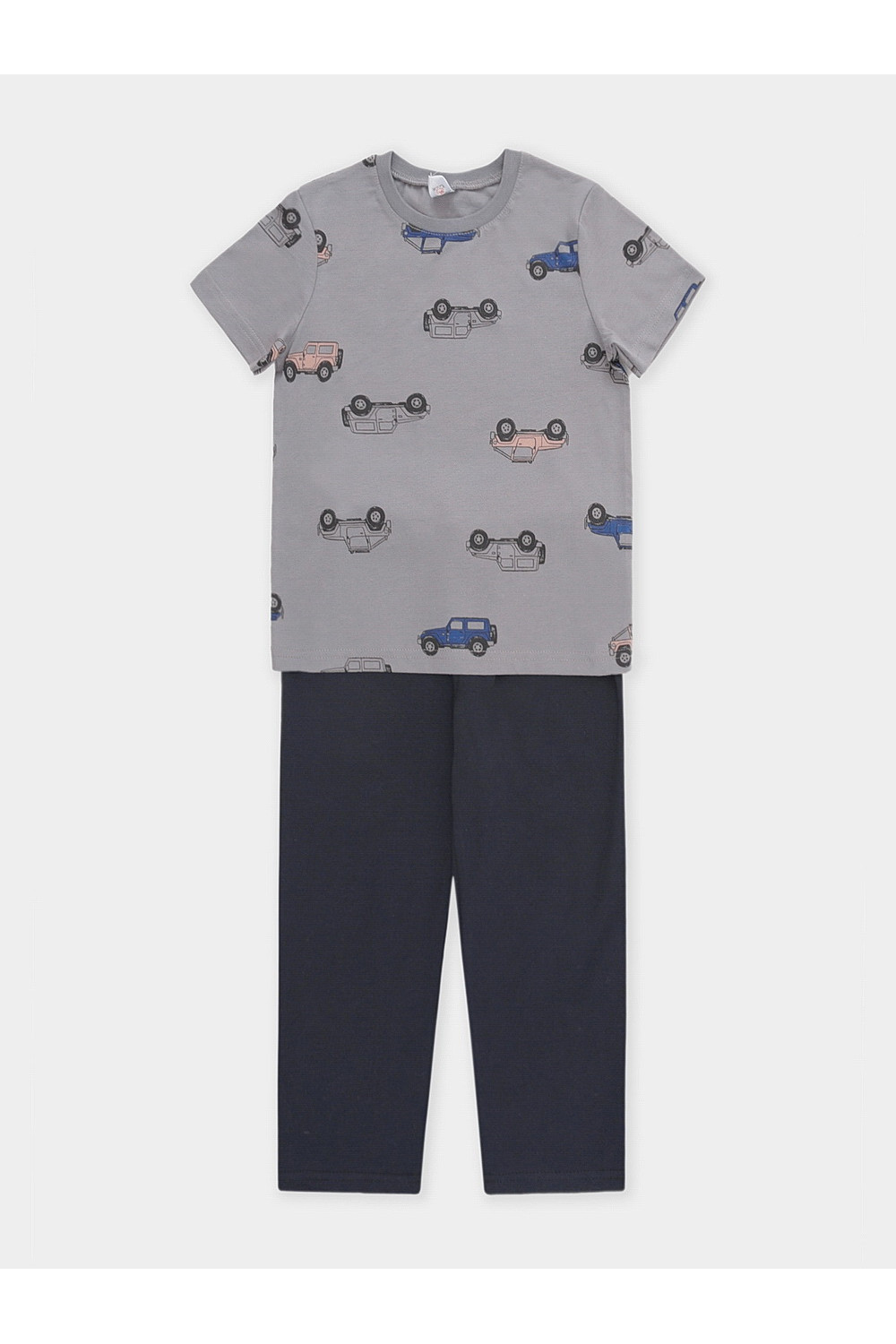 Пижама для мальчика из натурального хлопка. Футболка с короткими втачными рукавами и прямые брюки с эластичной резинкой в поясе. Оригинальная набивка и принт выполнены из стойких текстильных гипоаллергенных красителей. Изделие сохраняет цвет и форму после многократных стирок. Все трикотажные полотна производятся в соответствии с нормами швейцарского сертификата ЭкоТекс.