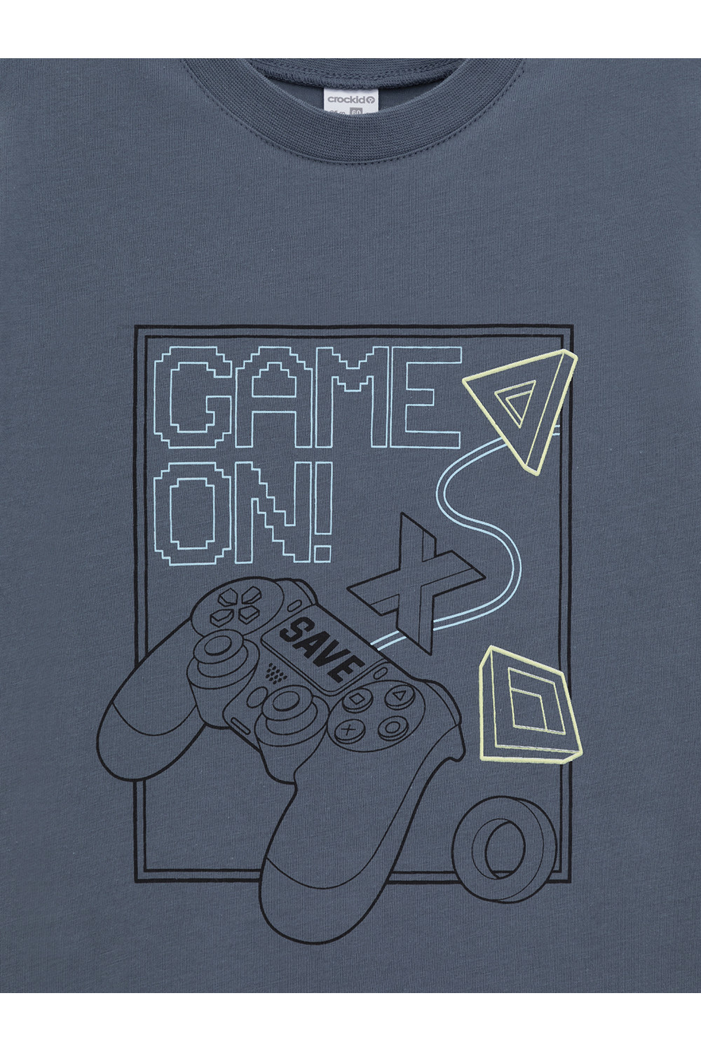 Пижама для мальчика из натурального хлопка. Футболка с короткими втачными рукавами и прямые брюки с эластичной резинкой в поясе. Оригинальная набивка и принт выполнены из стойких текстильных гипоаллергенных красителей. Изделие сохраняет цвет и форму после многократных стирок. Все трикотажные полотна производятся в соответствии с нормами швейцарского сертификата ЭкоТекс.