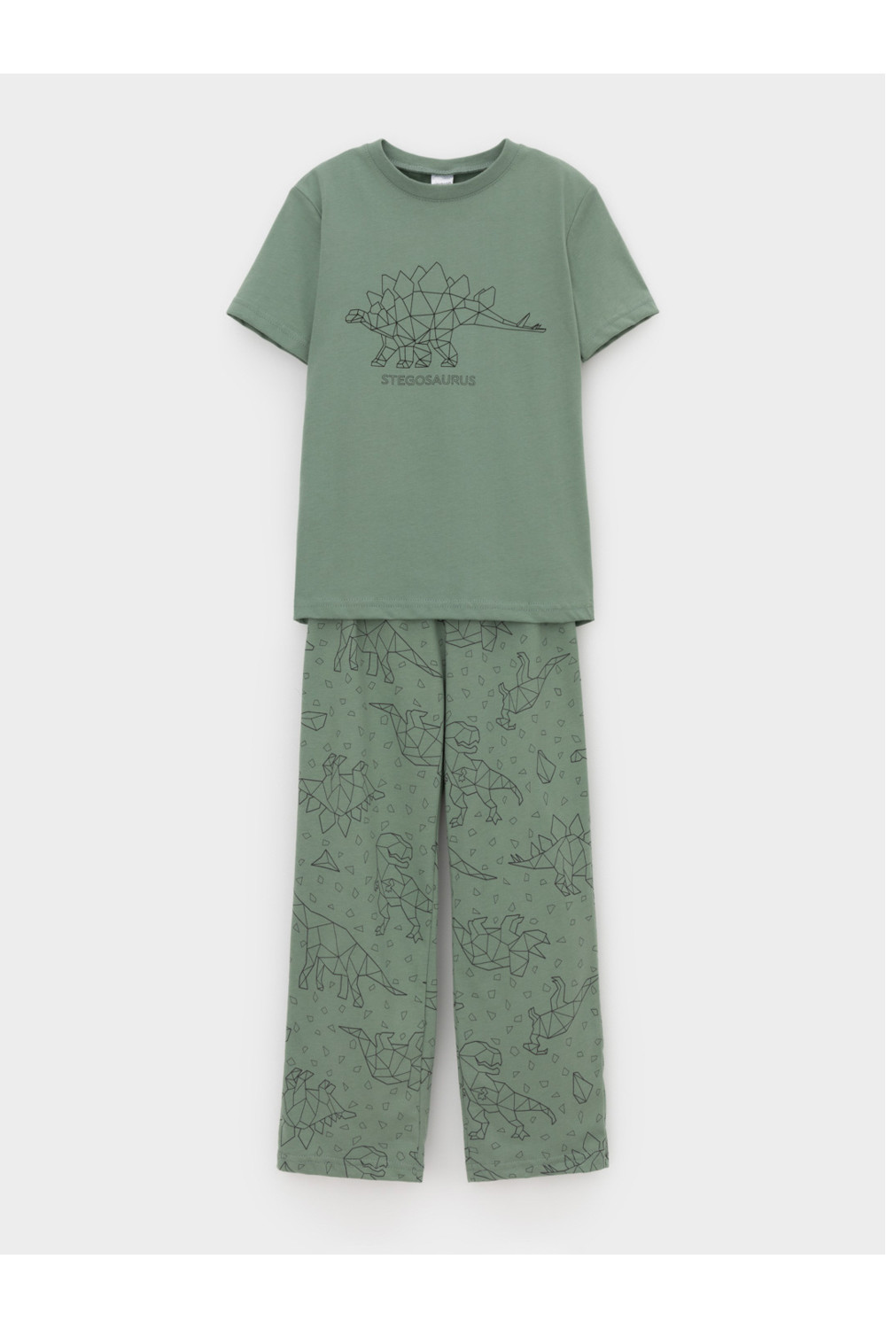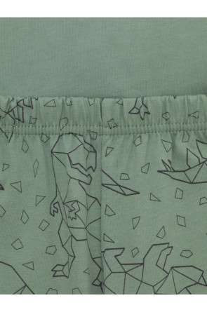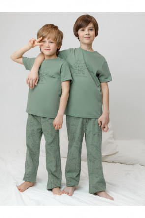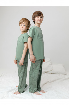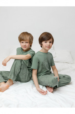 Трикотажная пижама из натурального хлопка. Футболка с короткими рукавами с принтом. У брюк эластичный пояс на резинке. Оригинальные принт и набивка выполнены из стойких, гипоаллергенных текстильных красителей. Пижама сохраняет цвет и форму после многократных стирок. Все трикотажные полотна производятся в соответсвии с нормами Швейцарского сертификата ЭкоТекс.