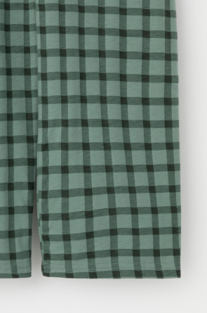 Трикотажная пижама из натурального хлопка. Футболка с короткими втачными рукавами и прямые брюки с эластичной резинкой в поясе. Оригинальные набивка и принт выполнены из стойких гипоаллергенных текстильных гипоаллергенных красителей. Изделие сохраняет цвет и форму после многократных стирок. Все трикотажные полотна производятся в соответсвии с нормами швейцарского сертификата ЭкоТекс.