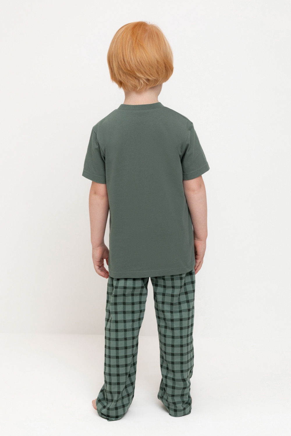 Трикотажная пижама из натурального хлопка. Футболка с короткими втачными рукавами и прямые брюки с эластичной резинкой в поясе. Оригинальные набивка и принт выполнены из стойких гипоаллергенных текстильных гипоаллергенных красителей. Изделие сохраняет цвет и форму после многократных стирок. Все трикотажные полотна производятся в соответсвии с нормами швейцарского сертификата ЭкоТекс.