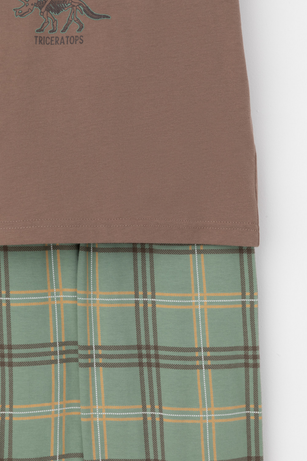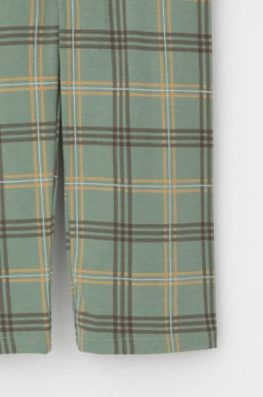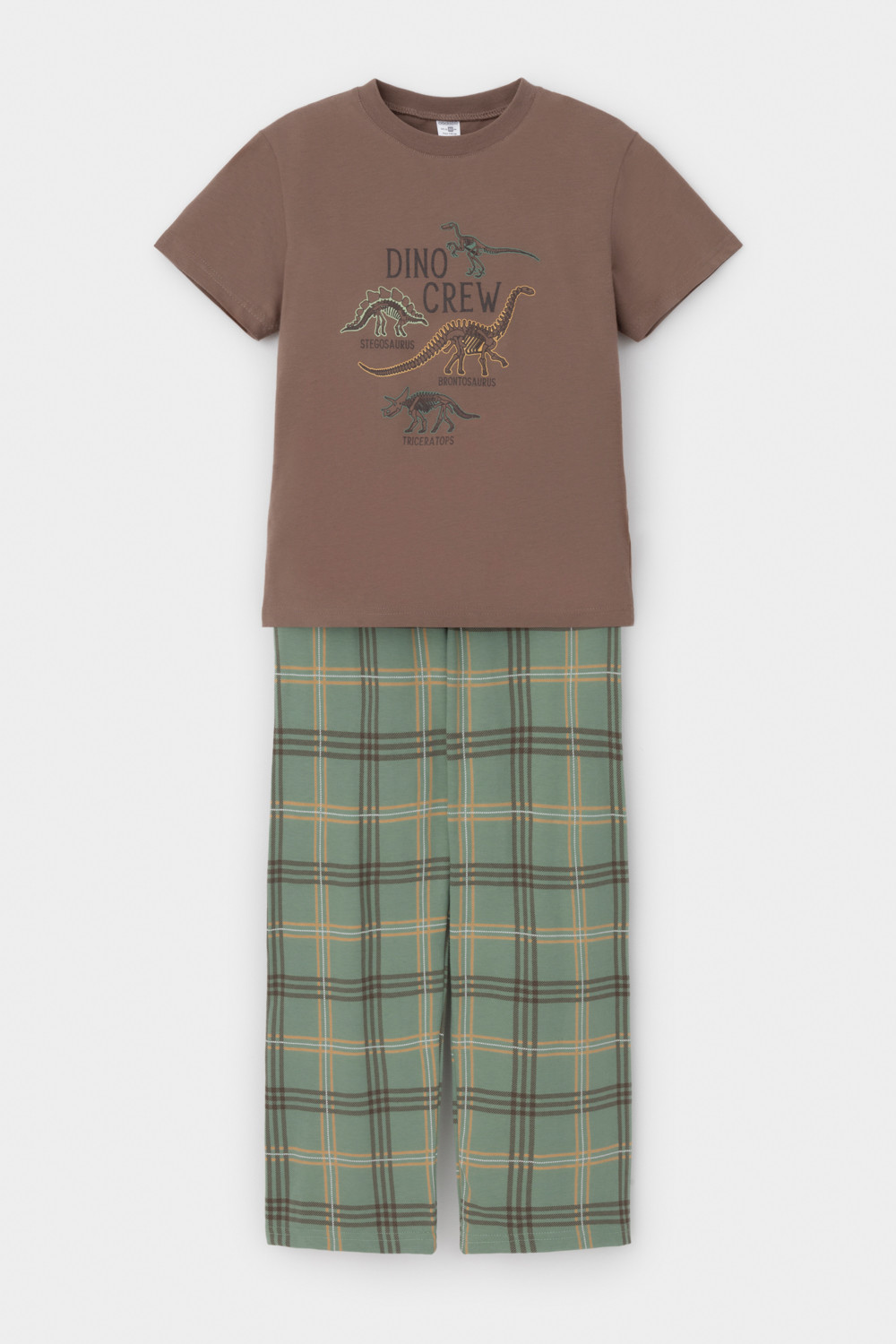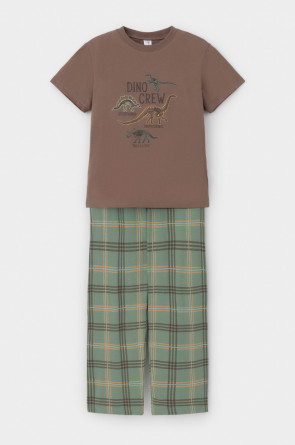Трикотажная пижама из натурального хлопка. Футболка с короткими втачными рукавами и прямые брюки с эластичной резинкой в поясе. Оригинальные набивка и принт выполнены из стойких гипоаллергенных текстильных гипоаллергенных красителей. Изделие сохраняет цвет и форму после многократных стирок. Все трикотажные полотна производятся в соответсвии с нормами швейцарского сертификата ЭкоТекс.