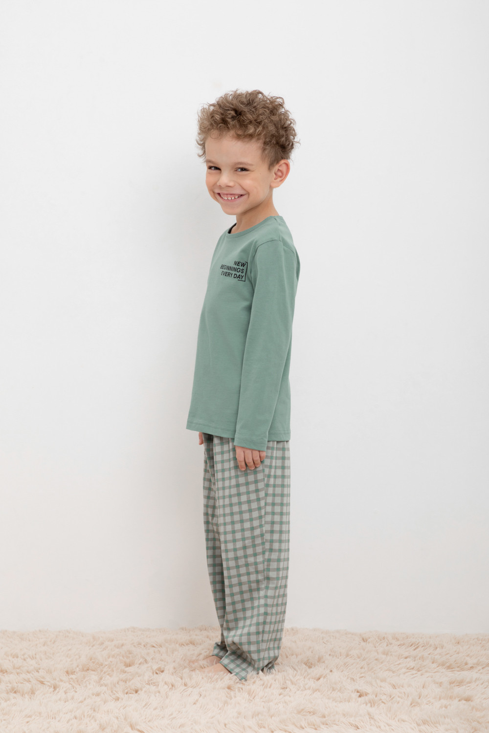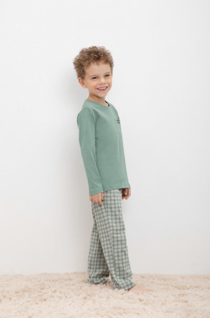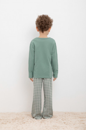 Трикотажная пижама из натурального хлопка. Джемпер с длинными рукавами с принтом. У брюк эластичный пояс на резинке. Оригинальные принт и набивка выполнены из стойких, гипоаллергенных текстильных красителей. Пижама сохраняет цвет и форму после многократных стирок. Все трикотажные полотна производятся в соответсвии с нормами Швейцарского сертификата ЭкоТекс.
