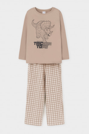 Трикотажная пижама из натурального хлопка. Джемпер с длинными втачными рукавами и прямые брюки с эластичной резинкой в поясе. Оригинальные набивка и принт выполнены из стойких гипоаллергенных текстильных гипоаллергенных красителей. Изделие сохраняет цвет и форму после многократных стирок. Все трикотажные полотна производятся в соответсвии с нормами швейцарского сертификата ЭкоТекс.