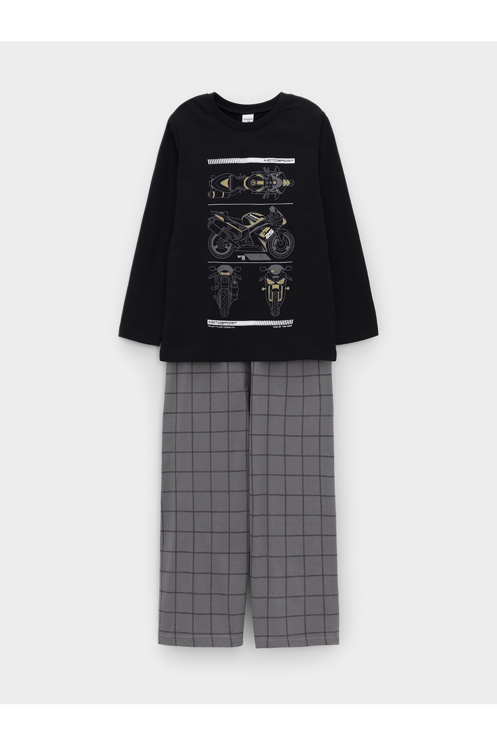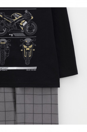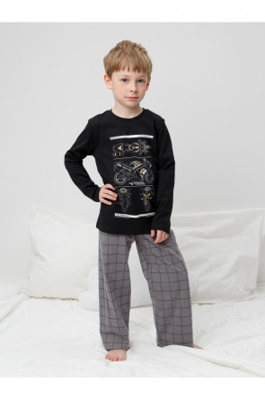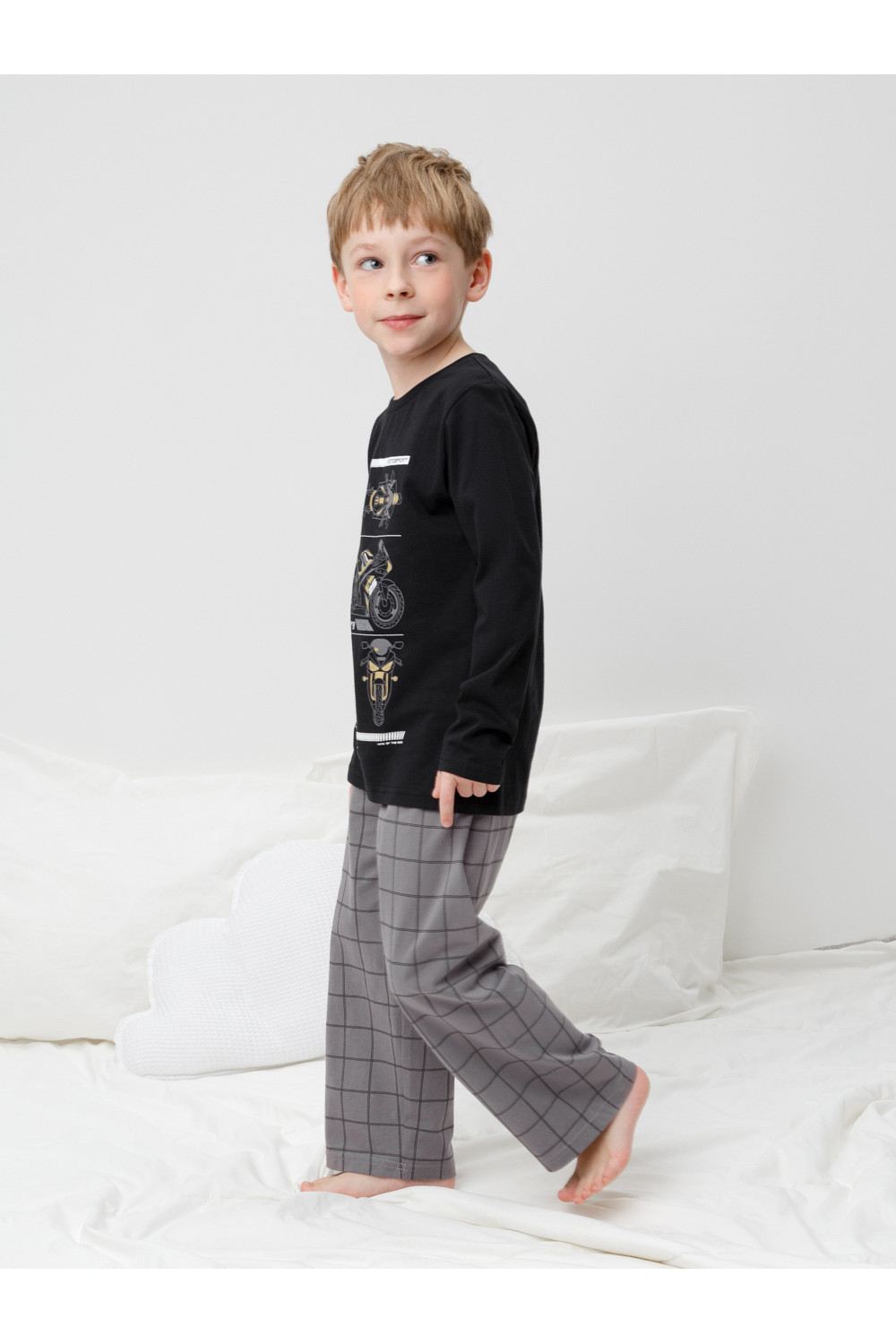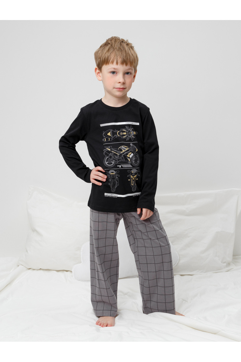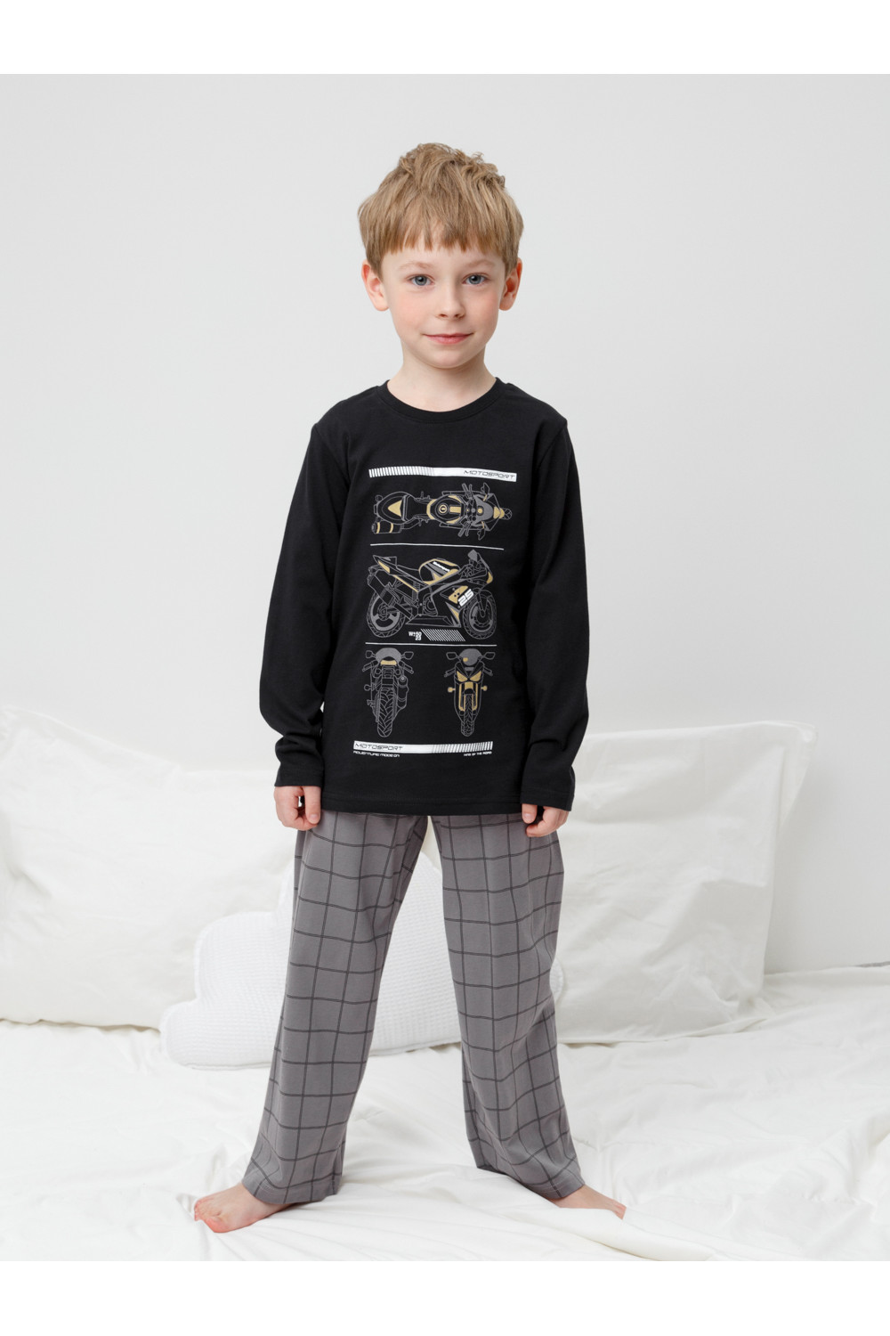 Трикотажный пижамный комплект из натурального хлопка. У джемпера длинные втачные рукава и эластичная мягкая горловина. Брюки с удобным поясом на резинке. Оригинальная набивка и принт выполнены из стойких, гипоаллергенных текстильных красителей. Все трикотажные полотна производятся в соответствии с нормами Швейцарского сертификата ЭкоТекс.