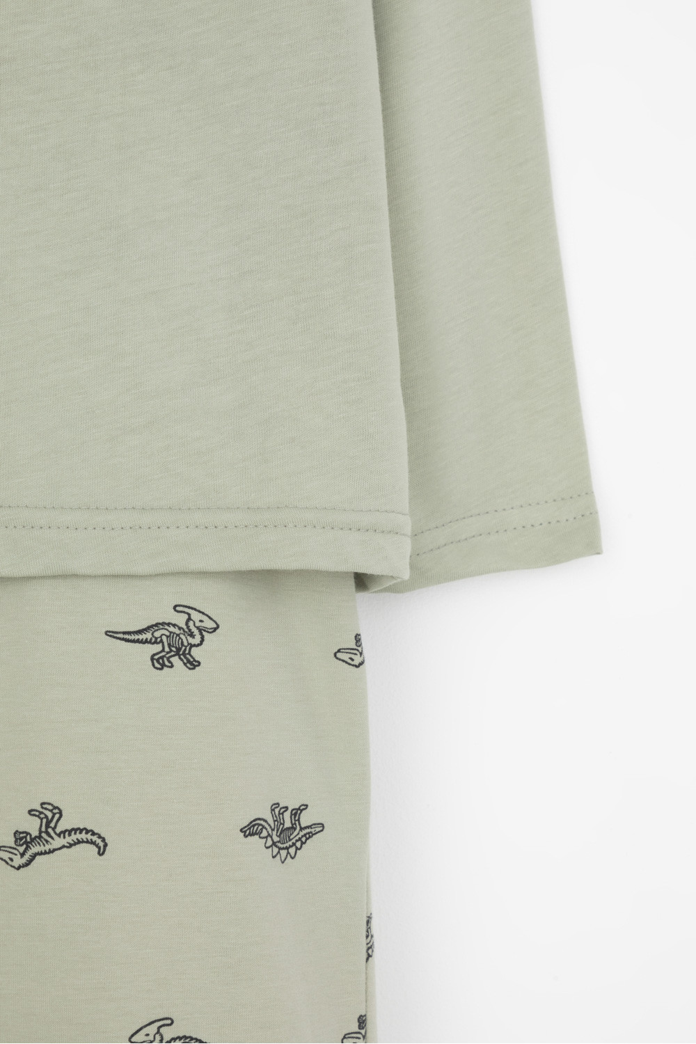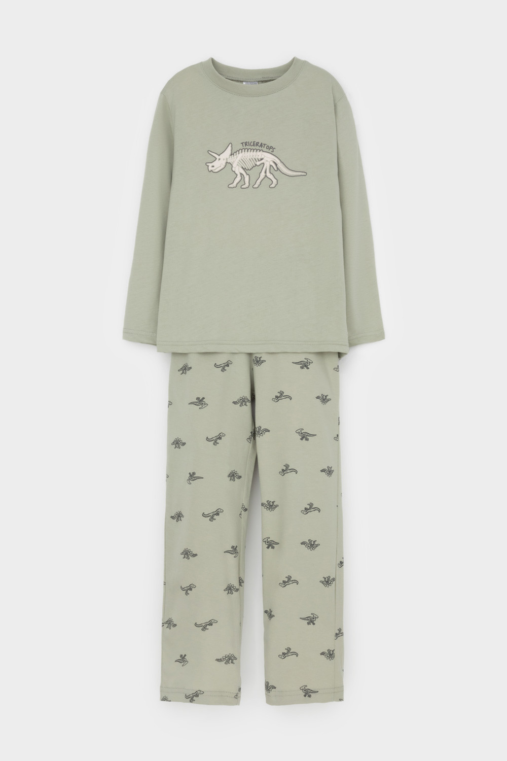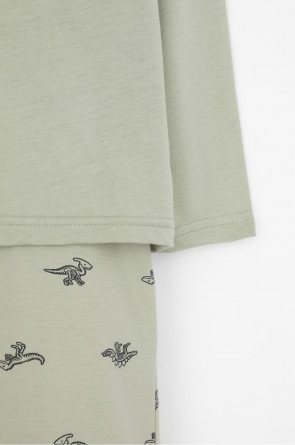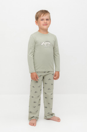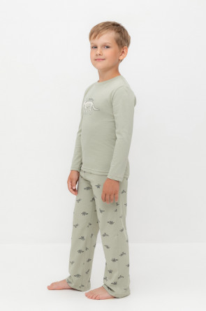 Трикотажная пижама из натурального хлопка. Джемпер с длинными рукавами с принтом. У брюк эластичный пояс на резинке. Оригинальные принт и набивка выполнены из стойких, гипоаллергенных текстильных красителей. Пижама сохраняет цвет и форму после многократных стирок. Все трикотажные полотна производятся в соответсвии с нормами Швейцарского сертификата ЭкоТекс.