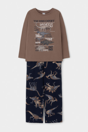 Пижама для мальчика из натурального хлопка. Джемпер с длинными втачными рукавами и прямые брюки с эластичной резинкой в поясе. Оригинальная набивка и принт выполнены из стойких текстильных гипоаллергенных красителей. Изделие сохраняет цвет и форму после многократных стирок. Все трикотажные полотна производятся в соответствии с нормами швейцарского сертификата ЭкоТекс.