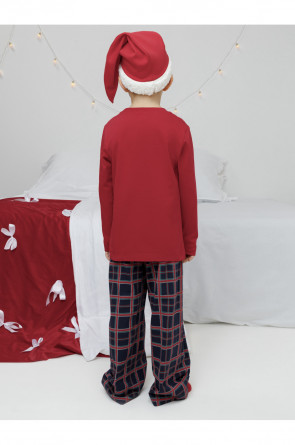 Новогодняя пижама из натурального хлопка для мальчика. Джемпер с длинными втачными рукавами и прямые брюки с эластичной резинкой в поясе. Пижама отлично подойдёт для создания уютных домашних образов или в качестве подарка на Новый год и Рождество. Оригинальная набивка и принт выполнены из стойких текстильных гипоаллергенных красителей. Изделие сохраняет цвет и форму после многократных стирок. Все трикотажные полотна производятся в соответствии с нормами швейцарского сертификата ЭкоТекс.