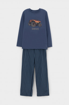 Трикотажная пижама из натурального хлопка. Джемпер с длинными рукавами с принтом. У брюк эластичный пояс на резинке. Оригинальные принт и набивка выполнены из стойких, гипоаллергенных текстильных красителей. Пижама сохраняет цвет и форму после многократных стирок. Все трикотажные полотна производятся в соответсвии с нормами Швейцарского сертификата ЭкоТекс.