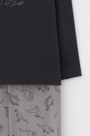 Трикотажная пижама из натурального хлопка. Джемпер с длинными рукавами с принтом. У брюк эластичный пояс на резинке. Оригинальные принт и набивка выполнены из стойких, гипоаллергенных текстильных красителей. Пижама сохраняет цвет и форму после многократных стирок. Все трикотажные полотна производятся в соответсвии с нормами Швейцарского сертификата ЭкоТекс.
