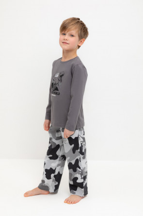 Трикотажная пижама из натурального хлопка. Джемпер с длинными втачными рукавами и прямые брюки с эластичной резинкой в поясе. Оригинальные набивка и принт выполнены из стойких гипоаллергенных текстильных гипоаллергенных красителей. Изделие сохраняет цвет и форму после многократных стирок. Все трикотажные полотна производятся в соответсвии с нормами швейцарского сертификата ЭкоТекс.