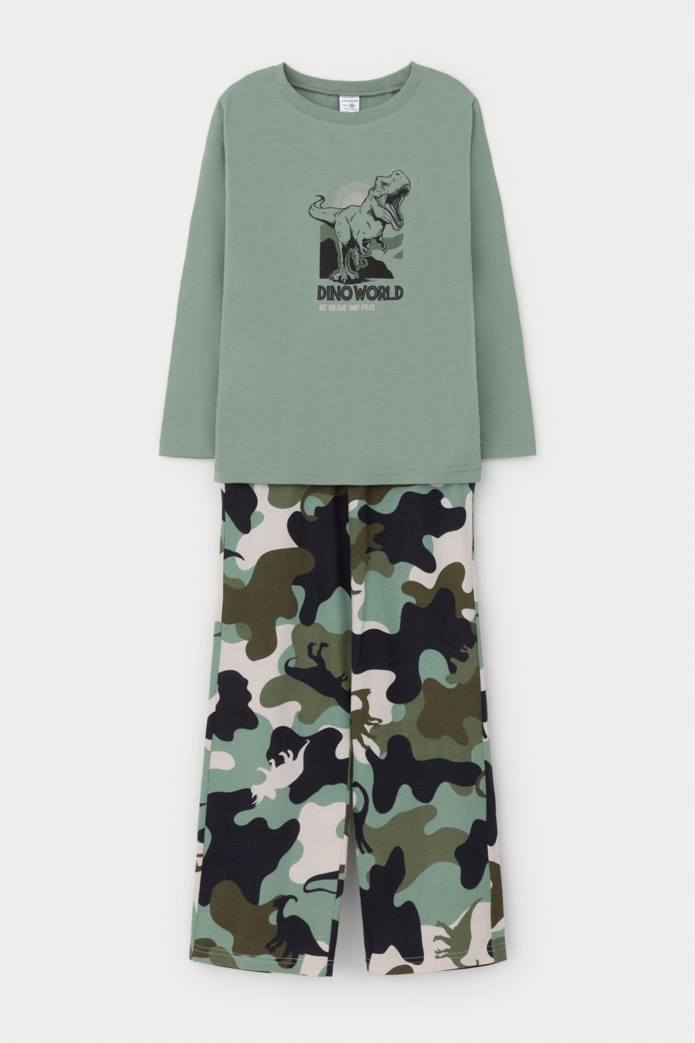 Трикотажная пижама из натурального хлопка. Джемпер с длинными втачными рукавами и прямые брюки с эластичной резинкой в поясе. Оригинальные набивка и принт выполнены из стойких гипоаллергенных текстильных гипоаллергенных красителей. Изделие сохраняет цвет и форму после многократных стирок. Все трикотажные полотна производятся в соответсвии с нормами швейцарского сертификата ЭкоТекс.