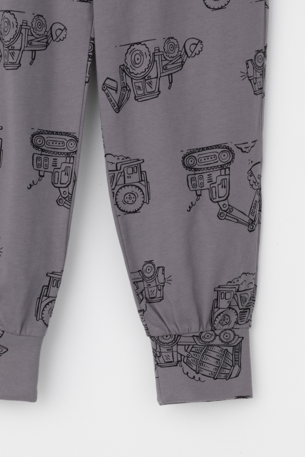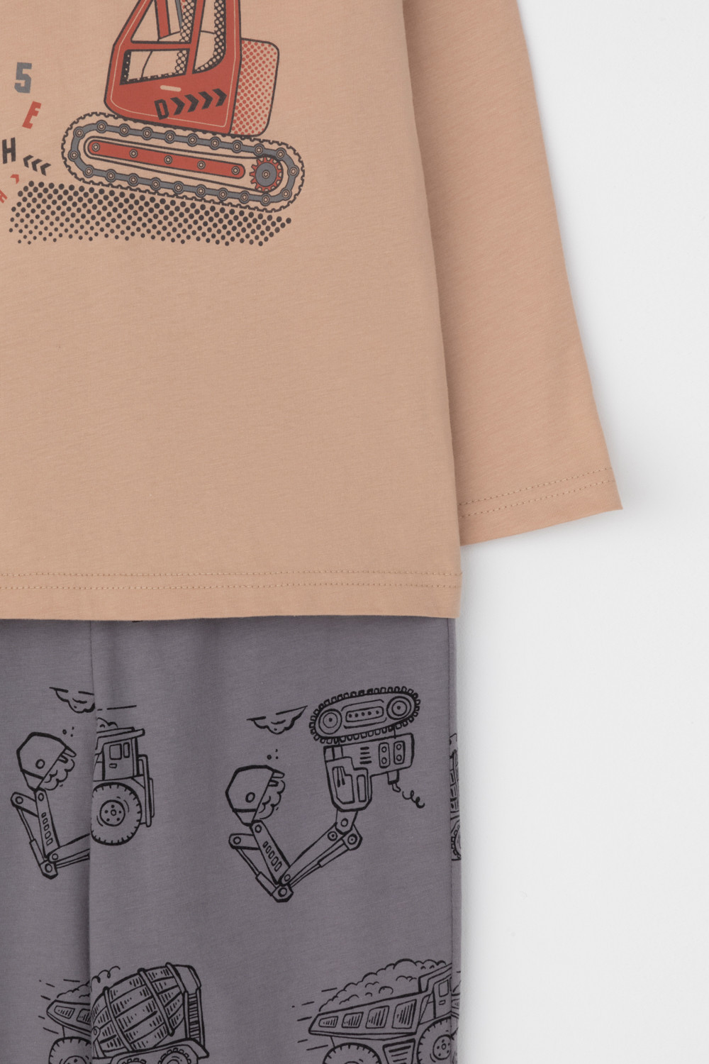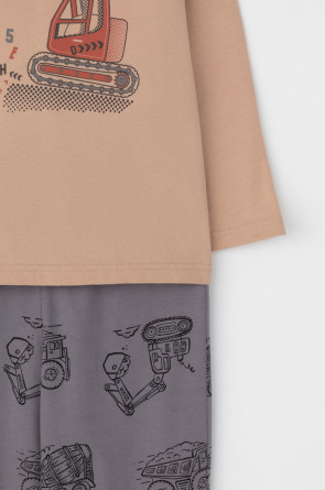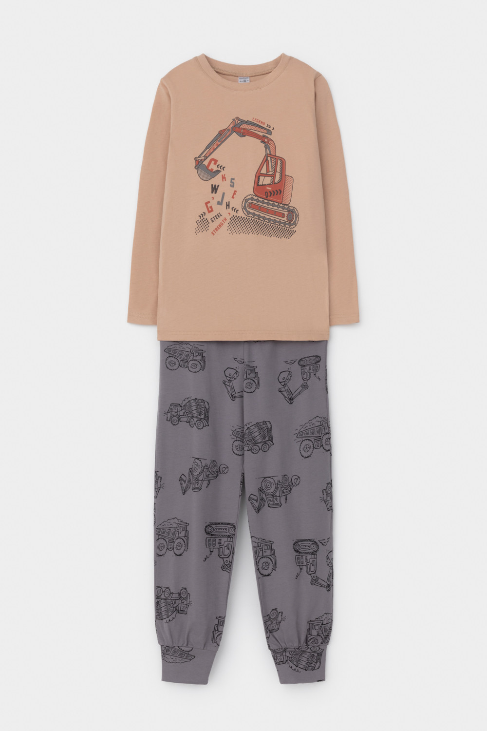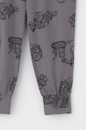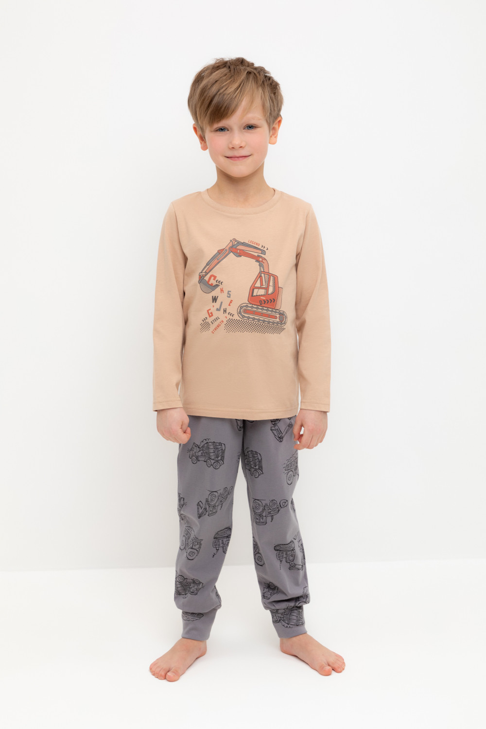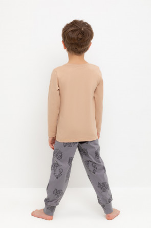 Трикотажная пижама из натурального хлопка. Джемпер с длинными втачными рукавами и брюки с эластичной резинкой в поясе. Мягкие манжеты по низу брюк. Оригинальные набивка и принт выполнены из стойких гипоаллергенных текстильных гипоаллергенных красителей. Изделие сохраняет цвет и форму после многократных стирок. Все трикотажные полотна производятся в соответсвии с нормами швейцарского сертификата ЭкоТекс.