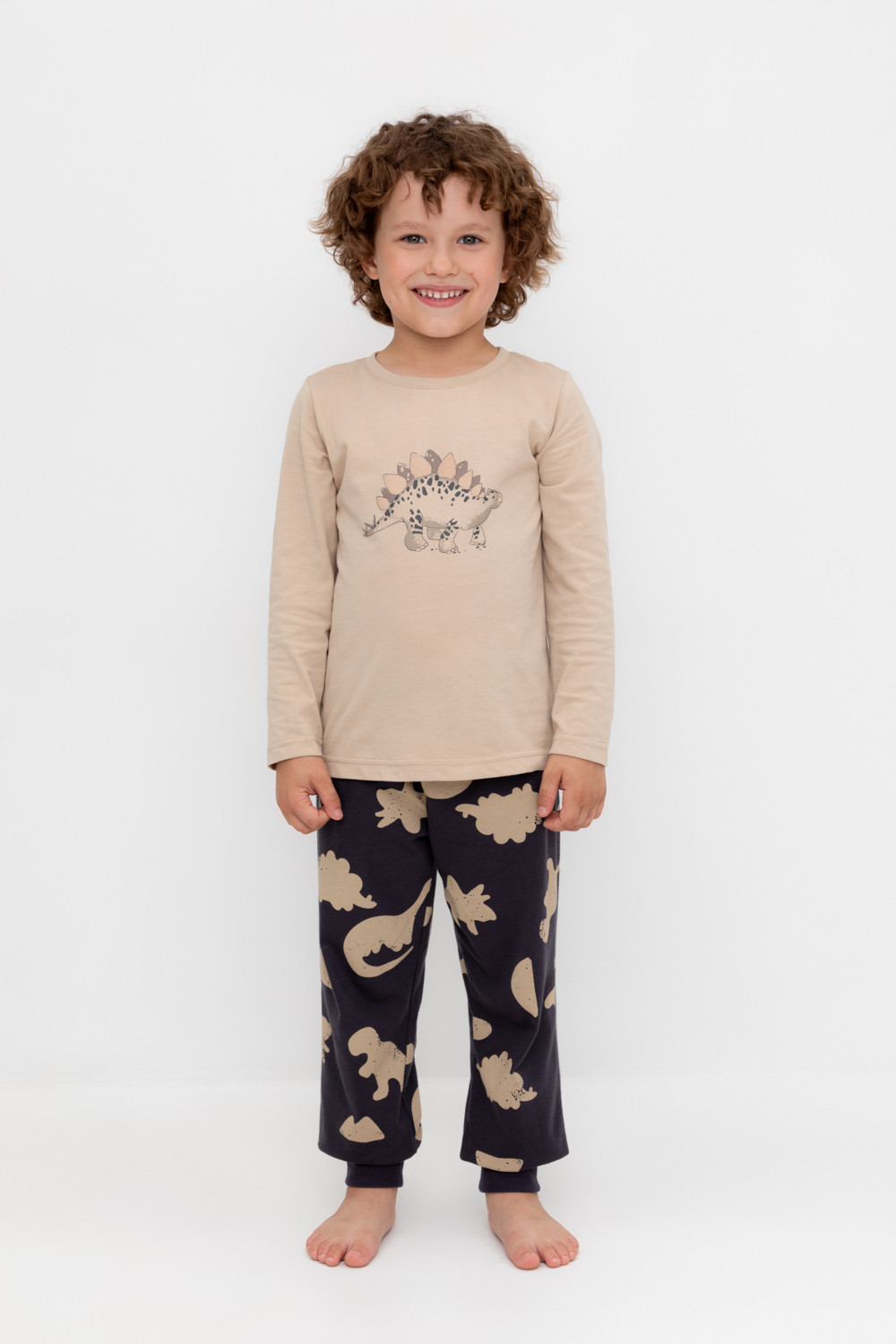 Трикотажная пижама из натурального хлопка. Джемпер с длинными рукавами. У брюк эластичный пояс на резинке, эластичные манжеты. Оригинальные принт и набивка выполнены из стойких, гипоаллергенных текстильных красителей. Пижама сохраняет цвет и форму после многократных стирок. Все трикотажные полотна производятся в соответсвии с нормами Швейцарского сертификата ЭкоТекс.