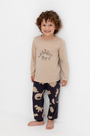 Трикотажная пижама из натурального хлопка. Джемпер с длинными рукавами. У брюк эластичный пояс на резинке, эластичные манжеты. Оригинальные принт и набивка выполнены из стойких, гипоаллергенных текстильных красителей. Пижама сохраняет цвет и форму после многократных стирок. Все трикотажные полотна производятся в соответсвии с нормами Швейцарского сертификата ЭкоТекс.
