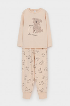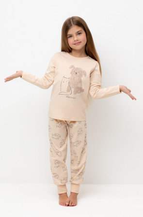 Трикотажная пижама из натурального хлопка. Джемпер с длинными втачными рукавами и брюки с эластичной резинкой в поясе. Мягкие манжеты по низу брюк. Оригинальные набивка и принт выполнены из стойких гипоаллергенных текстильных гипоаллергенных красителей. Изделие сохраняет цвет и форму после многократных стирок. Все трикотажные полотна производятся в соответсвии с нормами швейцарского сертификата ЭкоТекс.