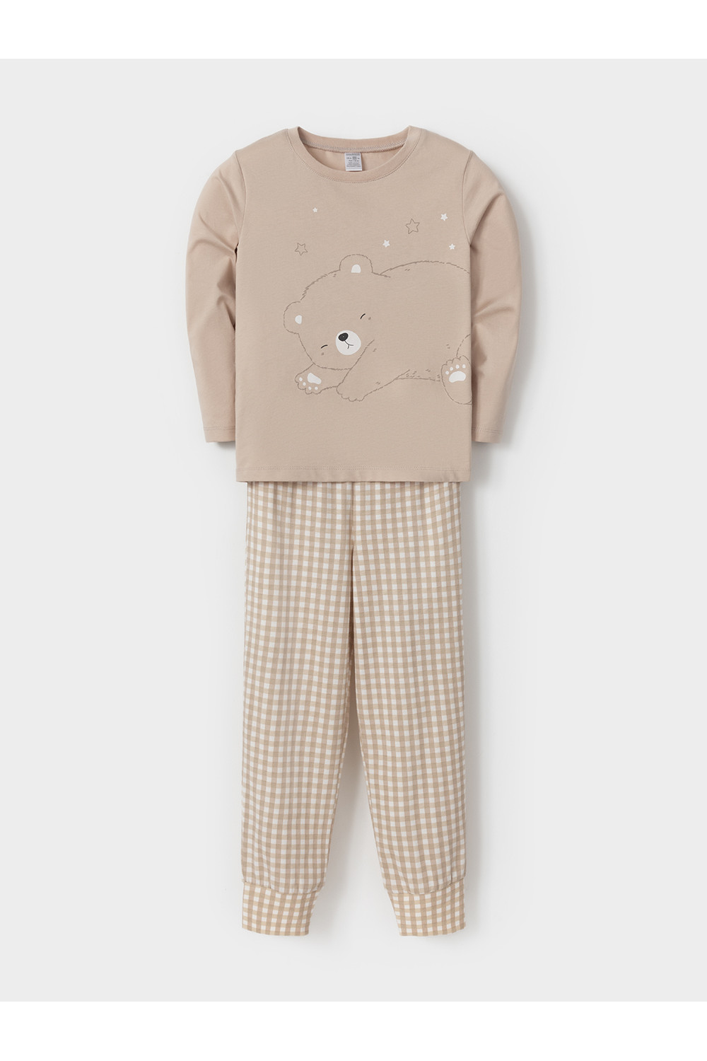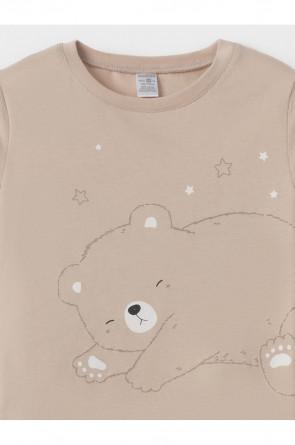 Пижама для девочки из натурального хлопка. Джемпер с длинными втачными рукавами и брюки с эластичной резинкой в поясе. Мягкие манжеты по низу брюк сделаны из материала в рубчик. Оригинальная набивка и принт выполнены из стойких текстильных гипоаллергенных красителей. Изделие сохраняет цвет и форму после многократных стирок. Все трикотажные полотна производятся в соответствии с нормами швейцарского сертификата ЭкоТекс.