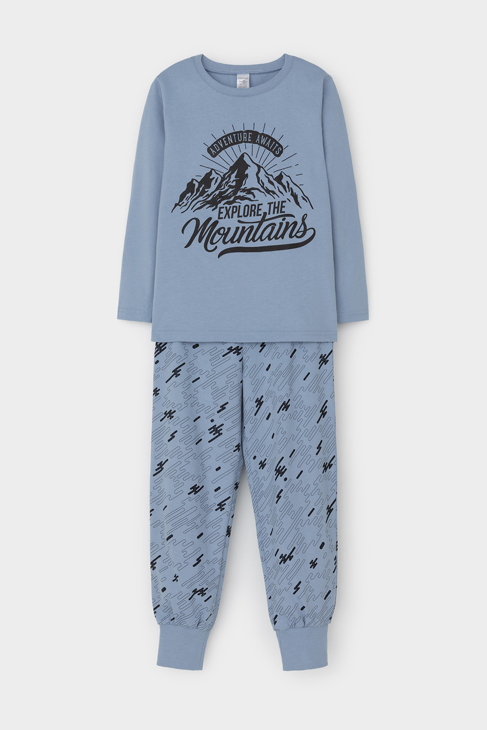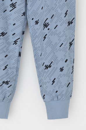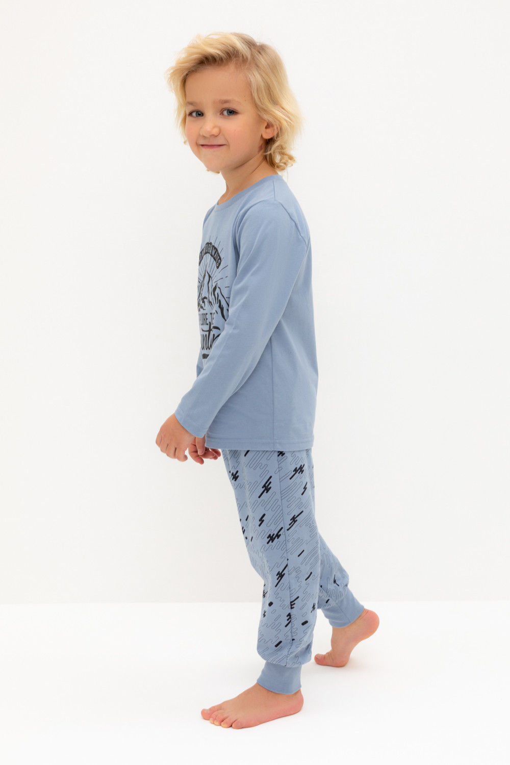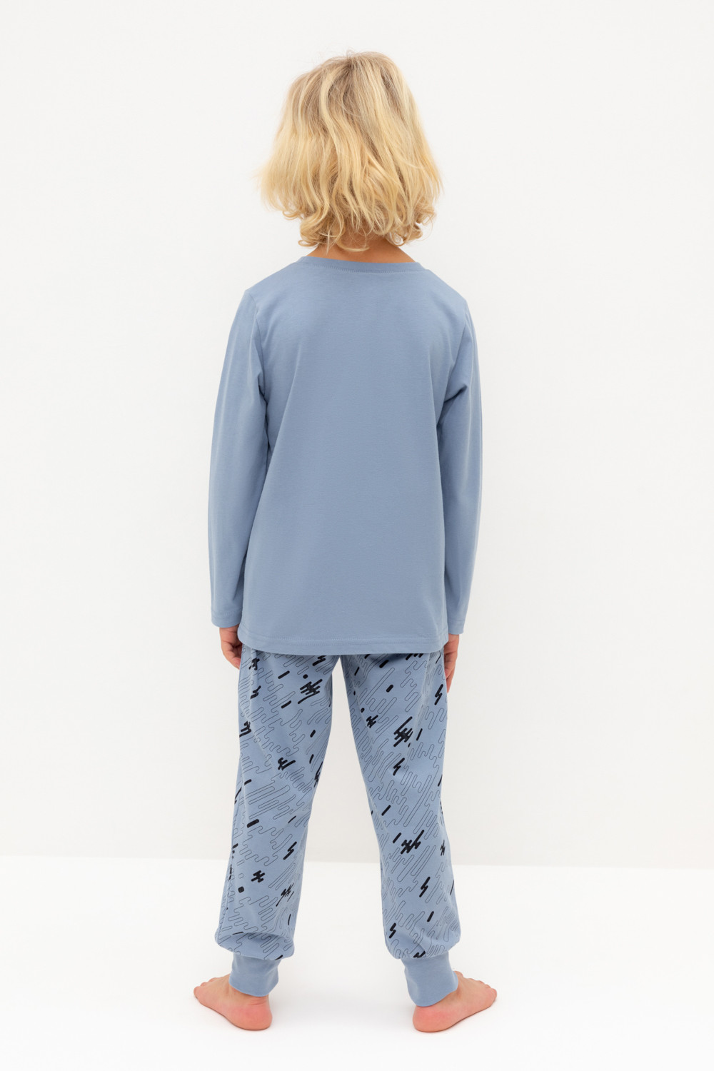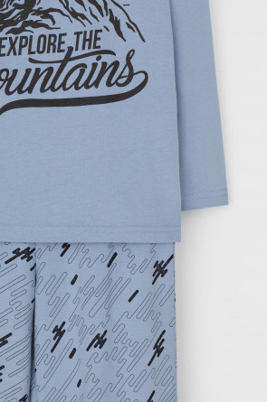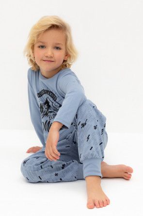 Трикотажная пижама из натурального хлопка. Джемпер с длинными втачными рукавами и брюки с эластичной резинкой в поясе. Мягкие манжеты по низу брюк. Оригинальные набивка и принт выполнены из стойких гипоаллергенных текстильных гипоаллергенных красителей. Изделие сохраняет цвет и форму после многократных стирок. Все трикотажные полотна производятся в соответсвии с нормами швейцарского сертификата ЭкоТекс.