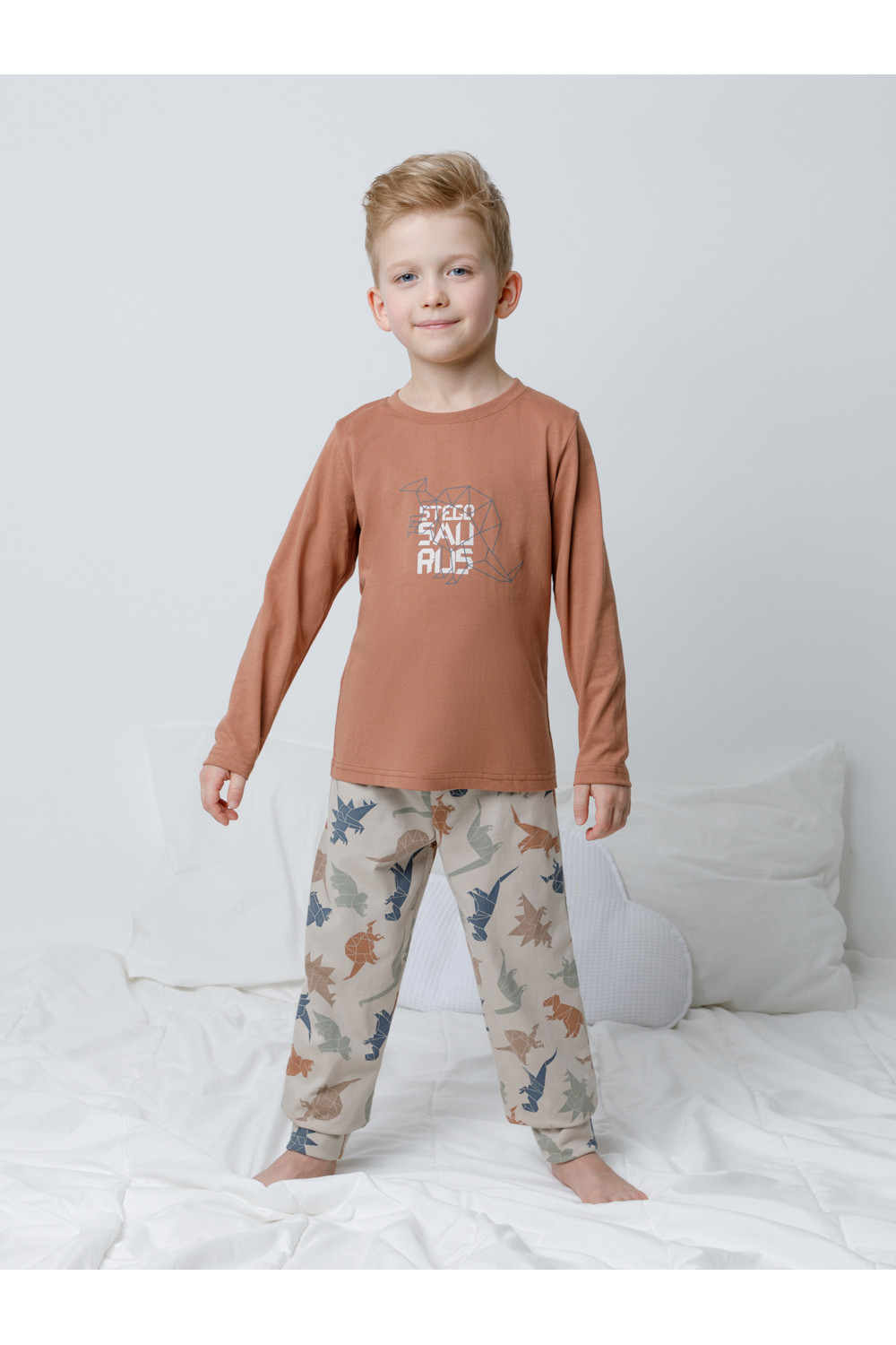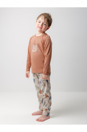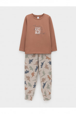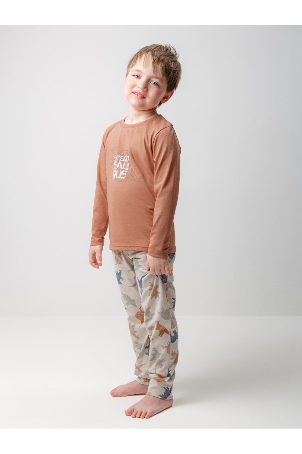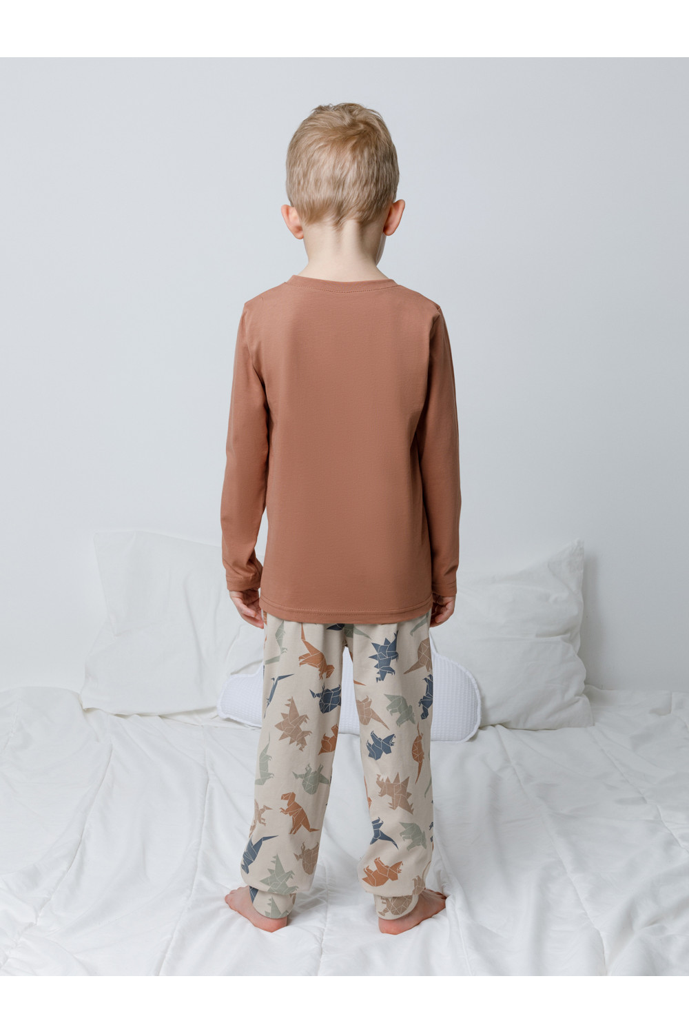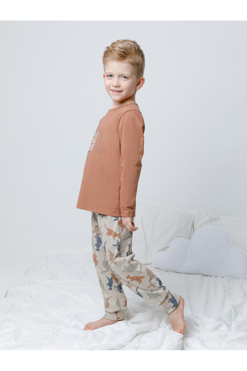 Трикотажная пижама из натурального хлопка. Джемпер с длинными втачными рукавами и брюки с эластичной резинкой в поясе. Мягкие манжеты по низу брюк. Оригинальные набивка и принт выполнены из стойких гипоаллергенных текстильных гипоаллергенных красителей. Изделие сохраняет цвет и форму после многократных стирок. Все трикотажные полотна производятся в соответсвии с нормами швейцарского сертификата ЭкоТекс.