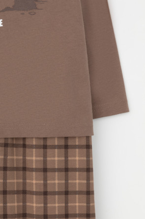 Пижама для мальчика из натурального хлопка. Джемпер с длинными втачными рукавами и брюки с эластичной резинкой в поясе. Мягкие манжеты по низу брюк сделаны из материала в рубчик. Оригинальная набивка и принт выполнены из стойких текстильных гипоаллергенных красителей. Изделие сохраняет цвет и форму после многократных стирок. Все трикотажные полотна производятся в соответствии с нормами швейцарского сертификата ЭкоТекс.