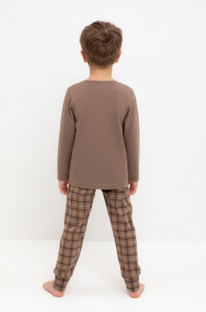 Пижама для мальчика из натурального хлопка. Джемпер с длинными втачными рукавами и брюки с эластичной резинкой в поясе. Мягкие манжеты по низу брюк сделаны из материала в рубчик. Оригинальная набивка и принт выполнены из стойких текстильных гипоаллергенных красителей. Изделие сохраняет цвет и форму после многократных стирок. Все трикотажные полотна производятся в соответствии с нормами швейцарского сертификата ЭкоТекс.
