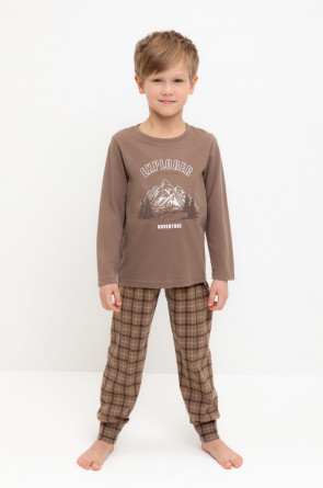 Пижама для мальчика из натурального хлопка. Джемпер с длинными втачными рукавами и брюки с эластичной резинкой в поясе. Мягкие манжеты по низу брюк сделаны из материала в рубчик. Оригинальная набивка и принт выполнены из стойких текстильных гипоаллергенных красителей. Изделие сохраняет цвет и форму после многократных стирок. Все трикотажные полотна производятся в соответствии с нормами швейцарского сертификата ЭкоТекс.