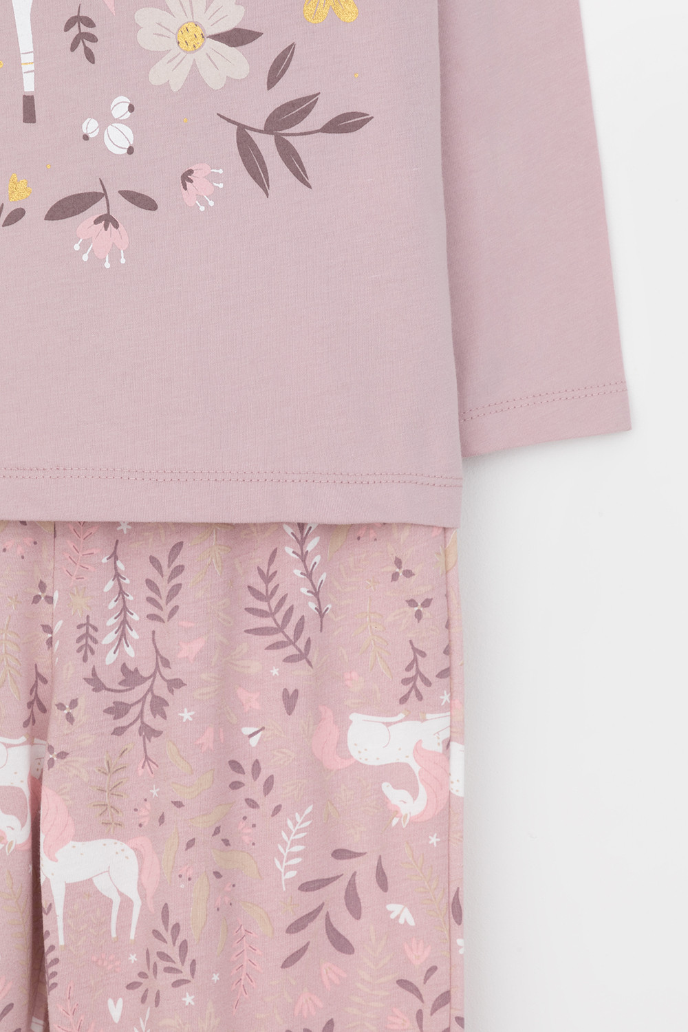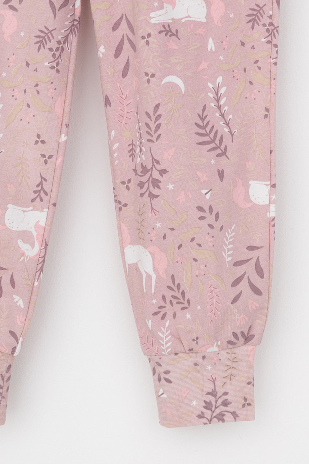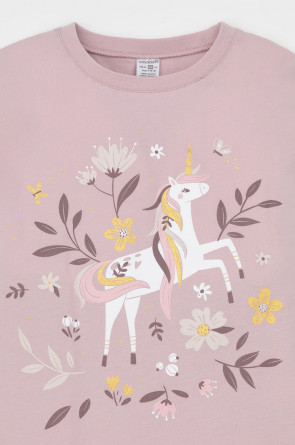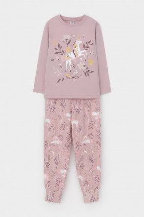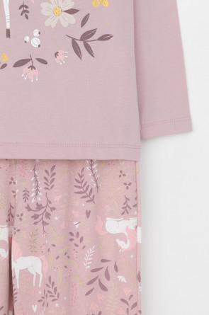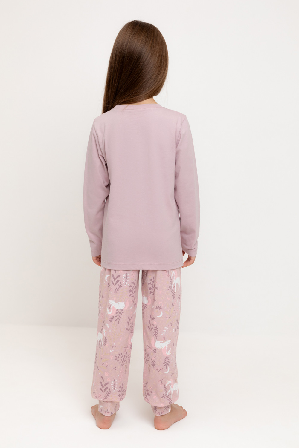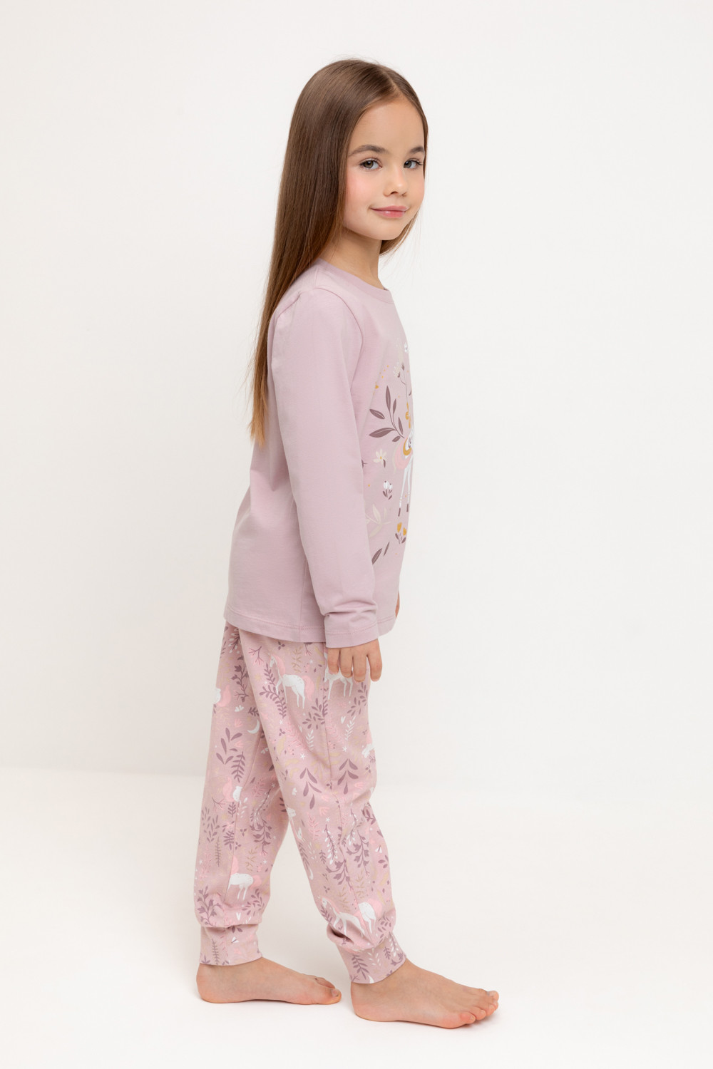 Трикотажная пижама из натурального хлопка. Джемпер с длинными втачными рукавами и брюки с эластичной резинкой в поясе. Мягкие манжеты по низу брюк. Оригинальные набивка и принт выполнены из стойких гипоаллергенных текстильных гипоаллергенных красителей. Изделие сохраняет цвет и форму после многократных стирок. Все трикотажные полотна производятся в соответсвии с нормами швейцарского сертификата ЭкоТекс.