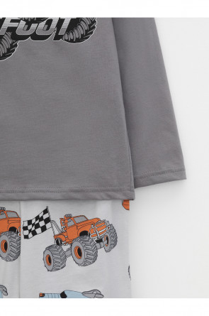 Трикотажная пижама из натурального хлопка. Джемпер с длинными втачными рукавами и брюки с эластичной резинкой в поясе. Мягкие манжеты по низу брюк. Оригинальные набивка и принт выполнены из стойких гипоаллергенных текстильных гипоаллергенных красителей. Изделие сохраняет цвет и форму после многократных стирок. Все трикотажные полотна производятся в соответсвии с нормами швейцарского сертификата ЭкоТекс.
