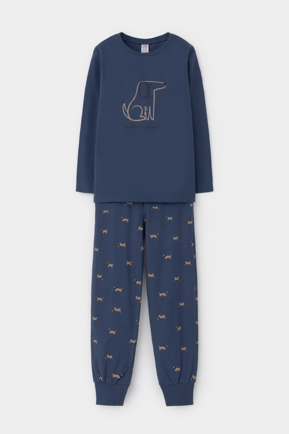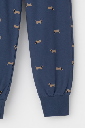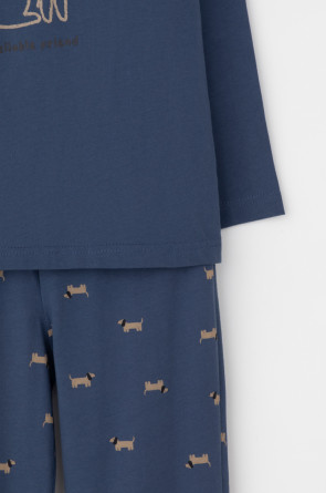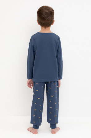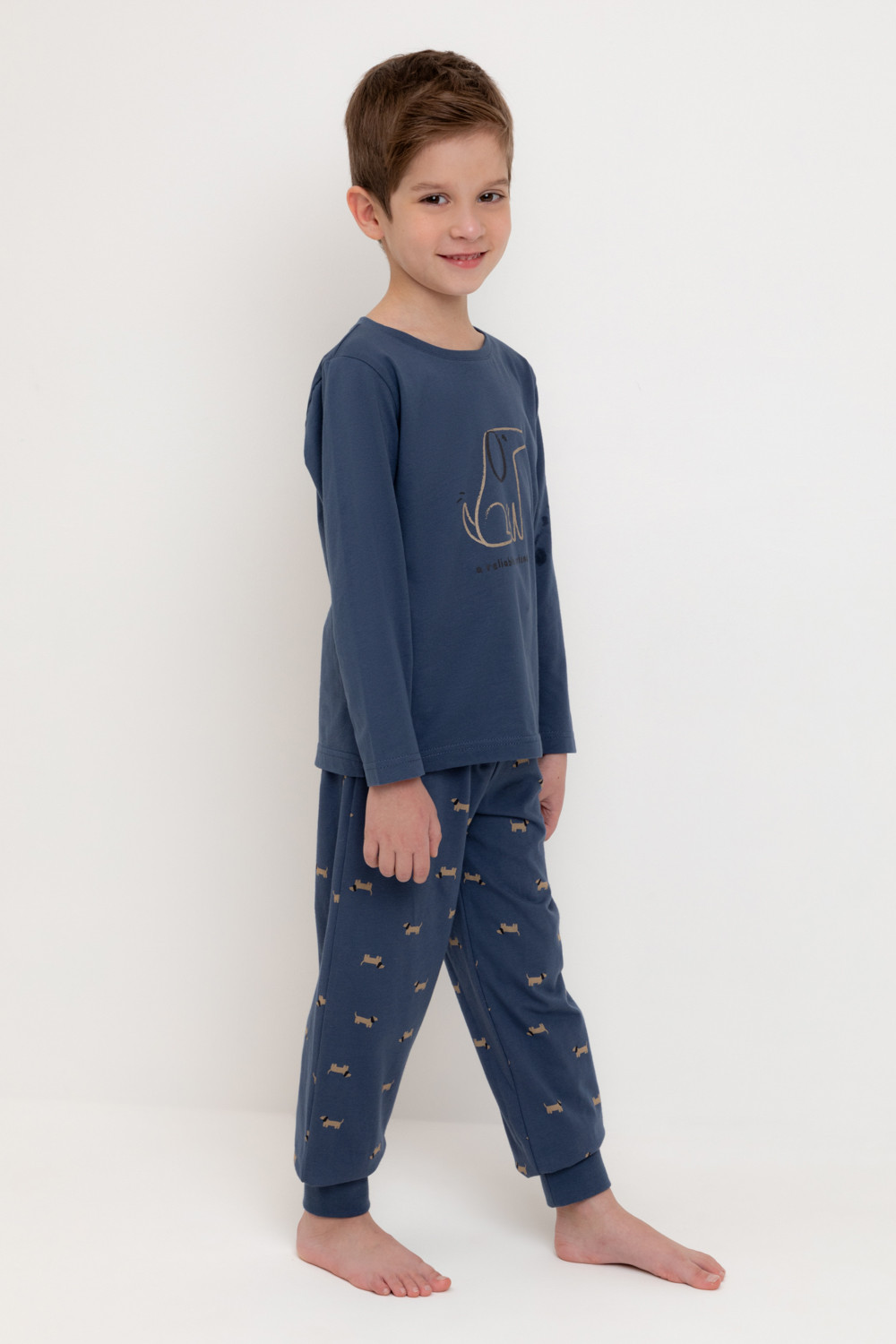 Трикотажная пижама из натурального хлопка. Джемпер с длинными втачными рукавами и брюки с эластичной резинкой в поясе. Мягкие манжеты по низу брюк. Оригинальные набивка и принт выполнены из стойких гипоаллергенных текстильных гипоаллергенных красителей. Изделие сохраняет цвет и форму после многократных стирок. Все трикотажные полотна производятся в соответсвии с нормами швейцарского сертификата ЭкоТекс.