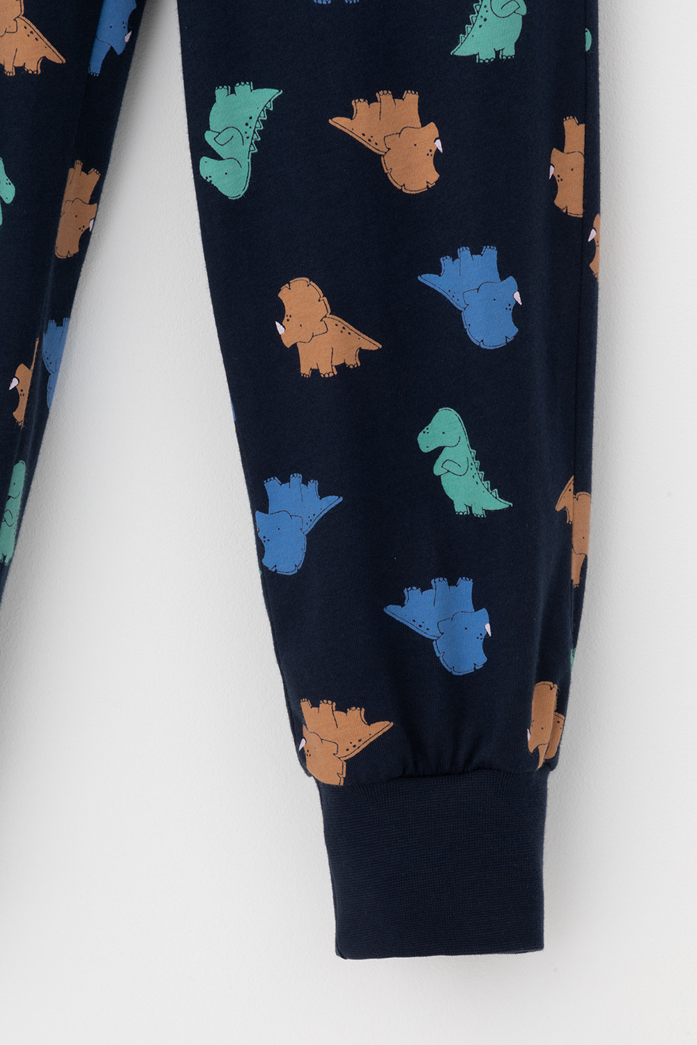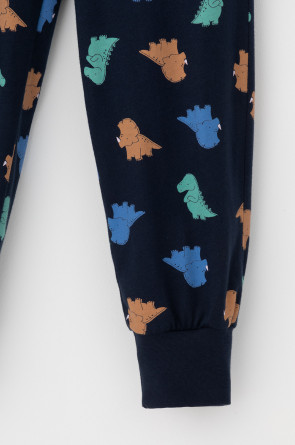 Трикотажная пижама из натурального хлопка. Джемпер с длинными рукавами с эластичными манжетами. У брюк эластичный пояс на резинке. Оригинальная набивка и принт выполнены из стойких, гипоаллергенных текстильных красителей. Пижама сохраняет цвет и форму после многократных стирок. Все трикотажные полотна производятся в соответствии с нормами Швейцарского сертификата ЭкоТекс.