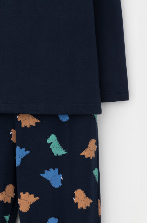 Трикотажная пижама из натурального хлопка. Джемпер с длинными рукавами с эластичными манжетами. У брюк эластичный пояс на резинке. Оригинальная набивка и принт выполнены из стойких, гипоаллергенных текстильных красителей. Пижама сохраняет цвет и форму после многократных стирок. Все трикотажные полотна производятся в соответствии с нормами Швейцарского сертификата ЭкоТекс.