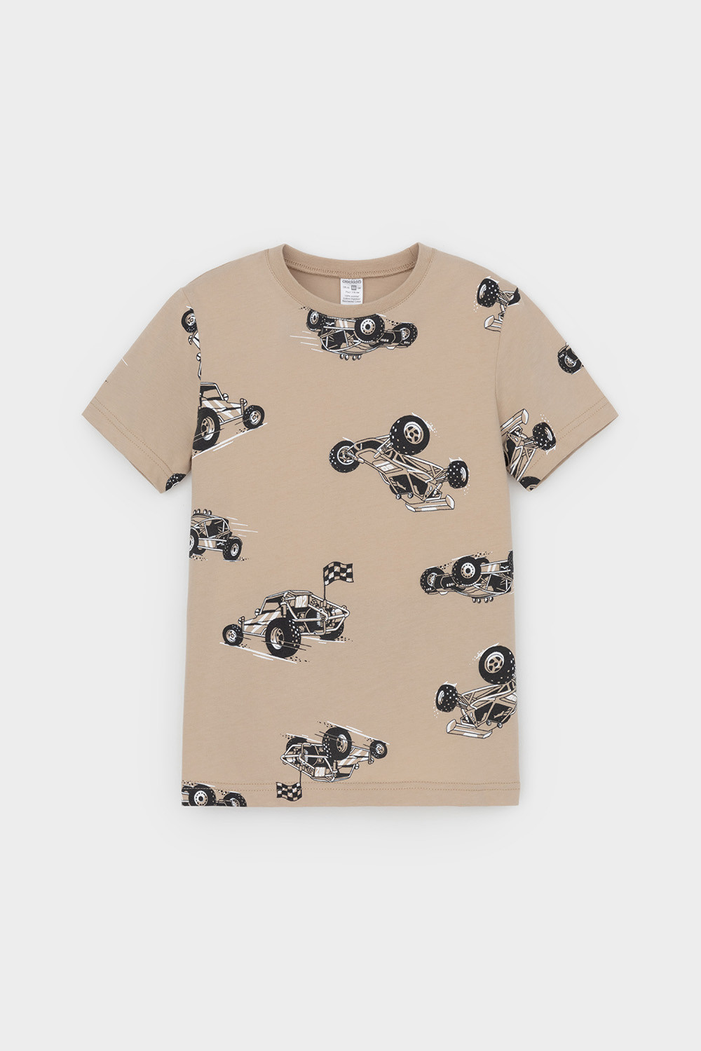 Пижама для мальчика из натурального хлопка. Футболка с короткими втачными рукавами и шорты с эластичной резинкой в поясе. Оригинальная набивка выполнена из стойких текстильных гипоаллергенных красителей. Изделие сохраняет цвет и форму после многократных стирок. Все трикотажные полотна производятся в соответствии с нормами швейцарского сертификата ЭкоТекс.