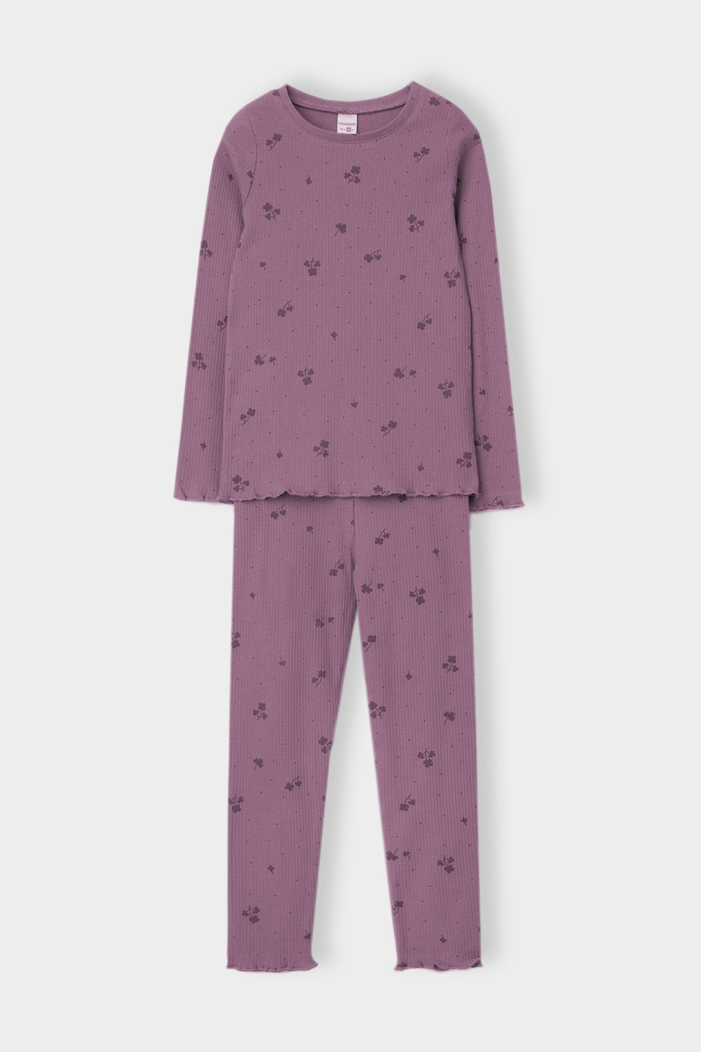 Трикотажная пижама в рубчик из натурального хлопка . Джемпер с длинными втачными рукавами. У лосин мягкий, эластичный пояс на резинке. Оригинальная набивка выполнена из стойких, гипоаллергенных текстильных красителей. Комплект сохраняет цвет и форму после многократных стирок. Все трикотажные полотна производятся в соответсвии с нормами Швейцарского сертификата ЭкоТекс.