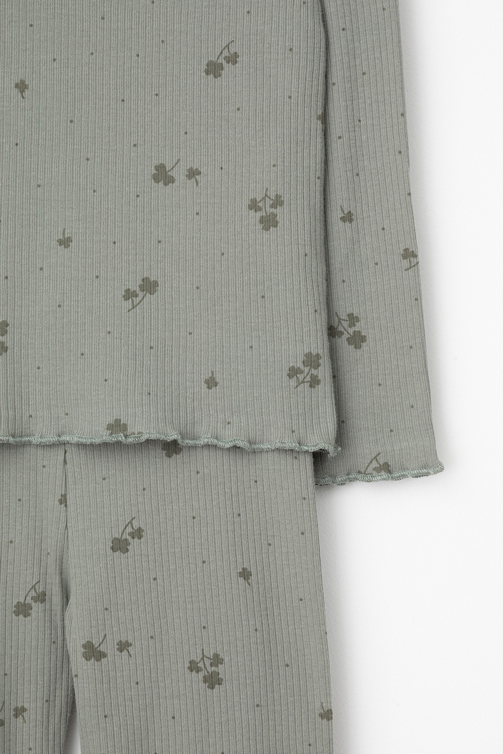Трикотажная пижама в рубчик из натурального хлопка . Джемпер с длинными втачными рукавами. У лосин мягкий, эластичный пояс на резинке. Оригинальная набивка выполнена из стойких, гипоаллергенных текстильных красителей. Комплект сохраняет цвет и форму после многократных стирок. Все трикотажные полотна производятся в соответсвии с нормами Швейцарского сертификата ЭкоТекс.