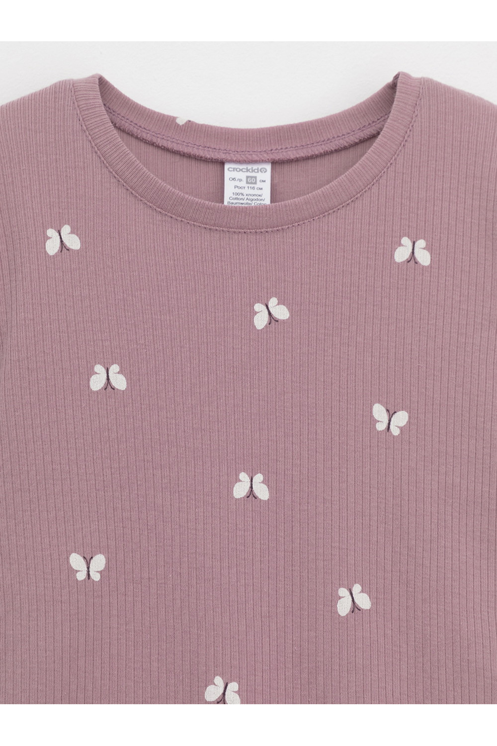 Трикотажная пижама в рубчик из натурального хлопка. Джемпер с длинными втачными рукавами и лосины с эластичной резинкой в поясе. Оригинальная набивка выполнена из стойких текстильных гипоаллергенных красителей. Изделие сохраняет цвет и форму после многократных стирок. Все трикотажные полотна производятся в соответствии с нормами швейцарского сертификата ЭкоТекс.