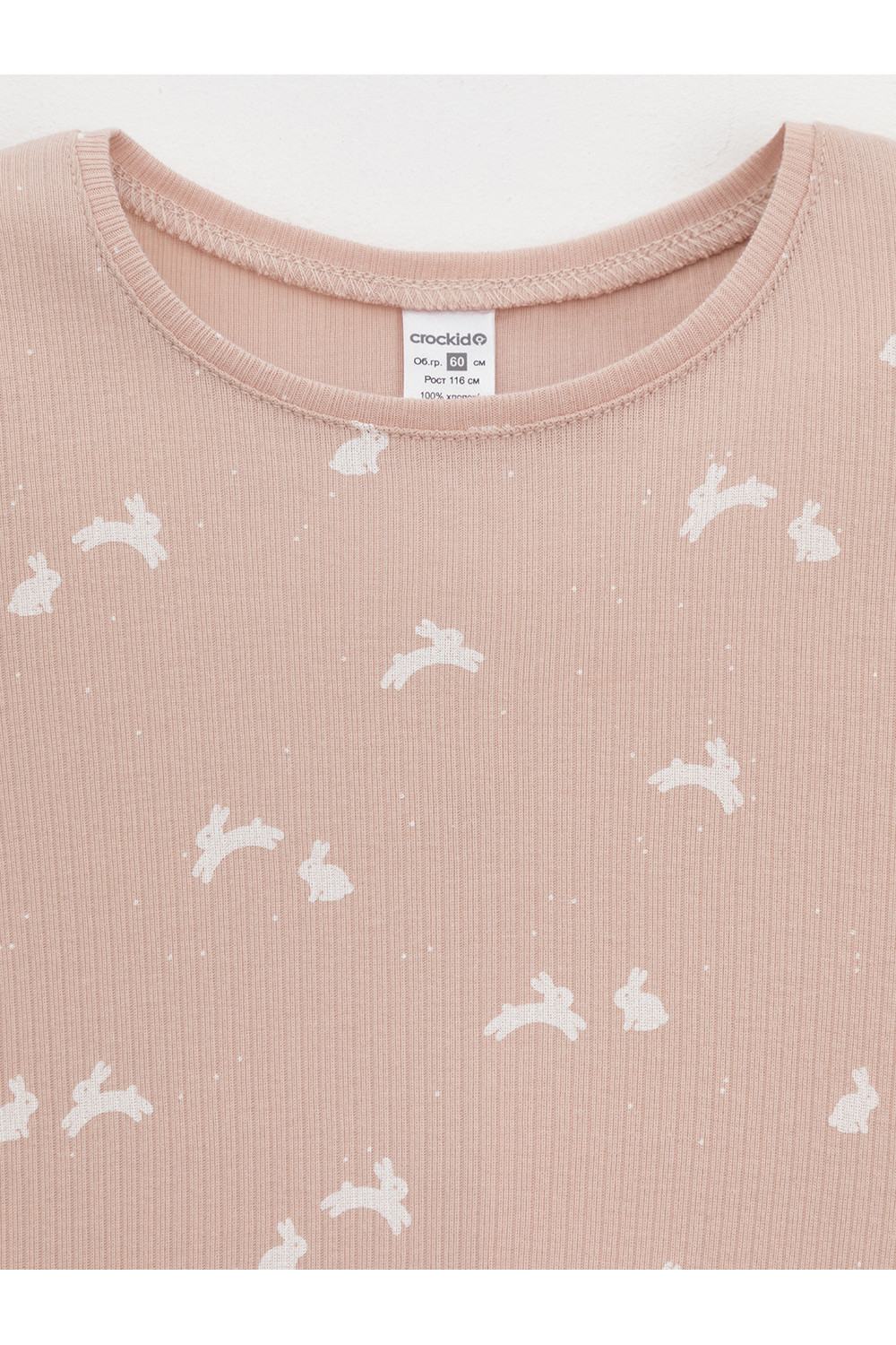 Трикотажная пижама в рубчик из натурального хлопка. Джемпер с длинными втачными рукавами и лосины с эластичной резинкой в поясе. Оригинальная набивка выполнена из стойких текстильных гипоаллергенных красителей. Изделие сохраняет цвет и форму после многократных стирок. Все трикотажные полотна производятся в соответствии с нормами швейцарского сертификата ЭкоТекс.