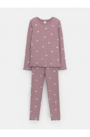Трикотажная пижама в рубчик из натурального хлопка. Джемпер с длинными втачными рукавами и лосины с эластичной резинкой в поясе. Оригинальная набивка выполнена из стойких текстильных гипоаллергенных красителей. Изделие сохраняет цвет и форму после многократных стирок. Все трикотажные полотна производятся в соответствии с нормами швейцарского сертификата ЭкоТекс.